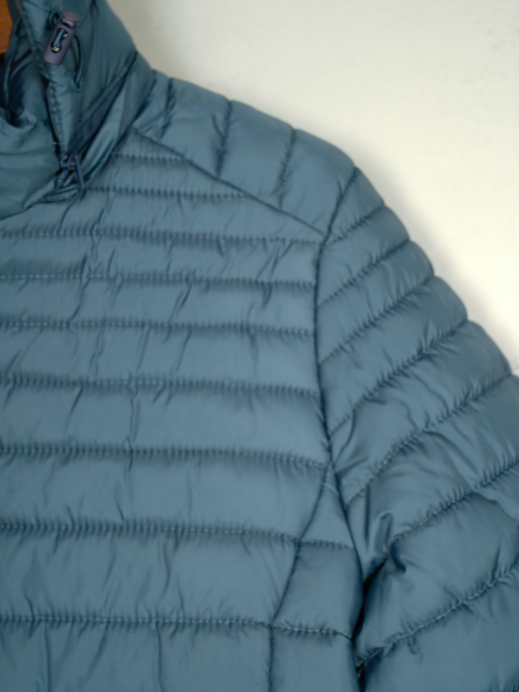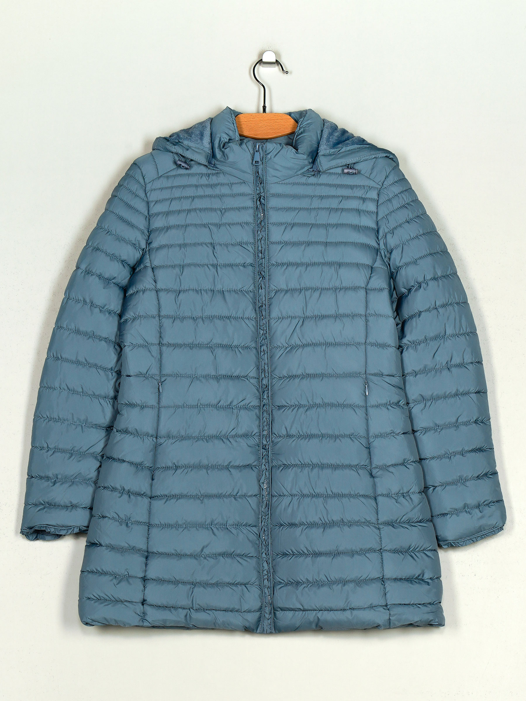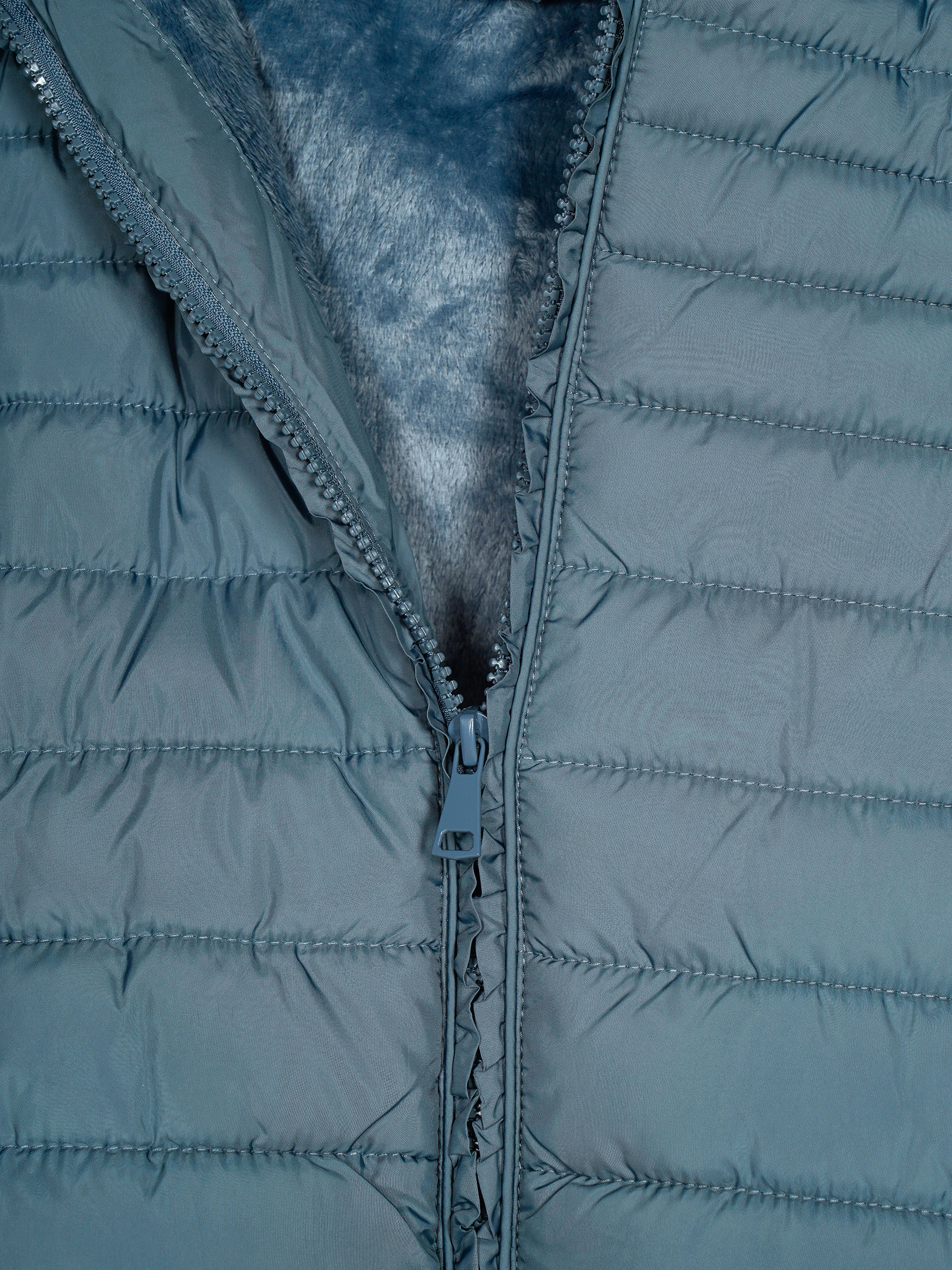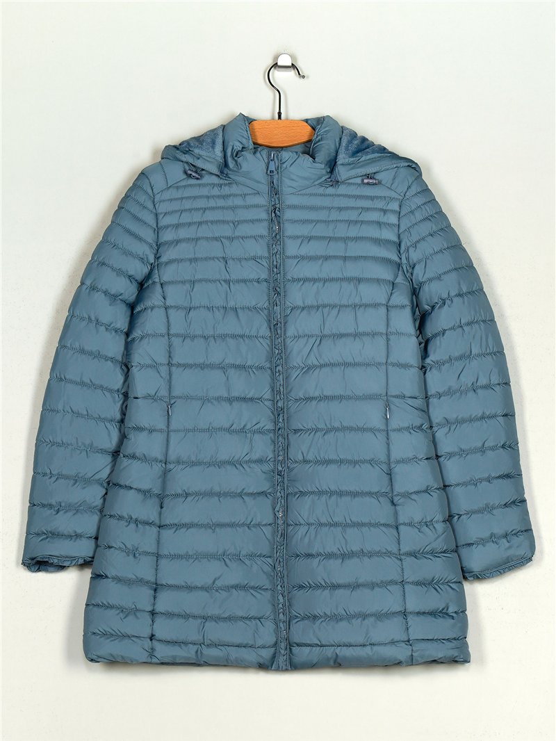 Details des langen Anoraks mit Kapuze und Fleecefutter MF-AF-83108-65-BLUE