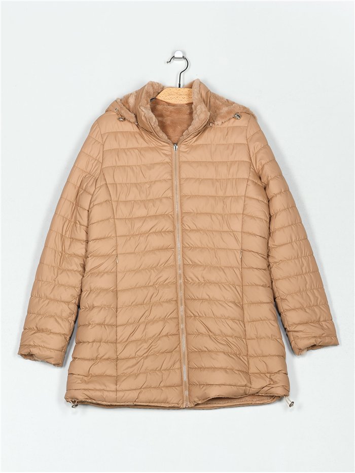 Details zu weit geschnittenem, umkehrbarem Anorak mit Kapuze und Fleecefutter MF-AF-83027-54-TAN