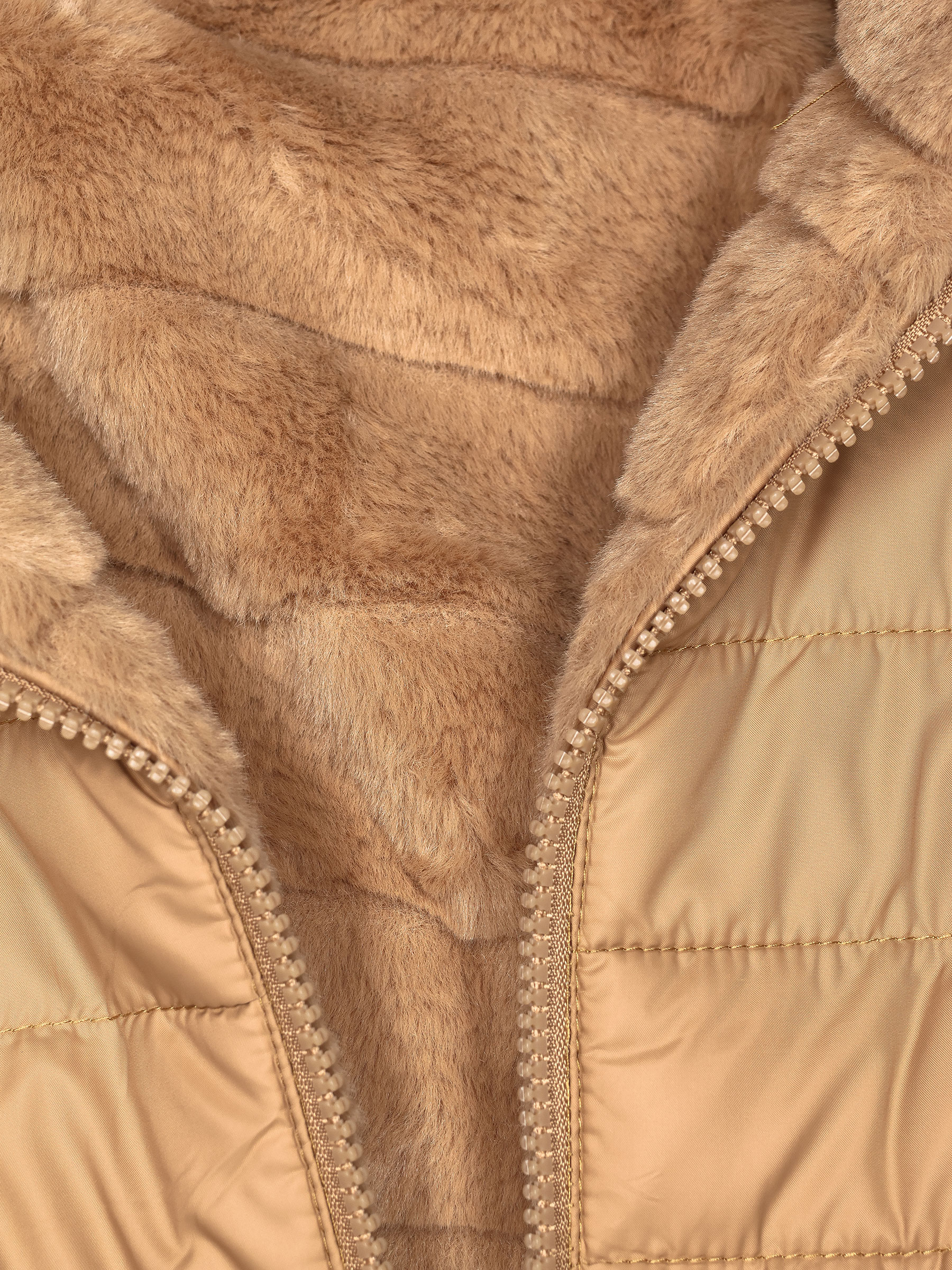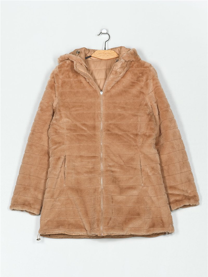 Weit geschnittener Wendeanorak. Abnehmbare Kapuze. Stehkragen. Innenfutter mit Fell-Effekt in passender Farbe. Seitentaschen mit Reißverschlüssen. Stehkragen. Lange Ärmel. Zentraler Reißverschluss.