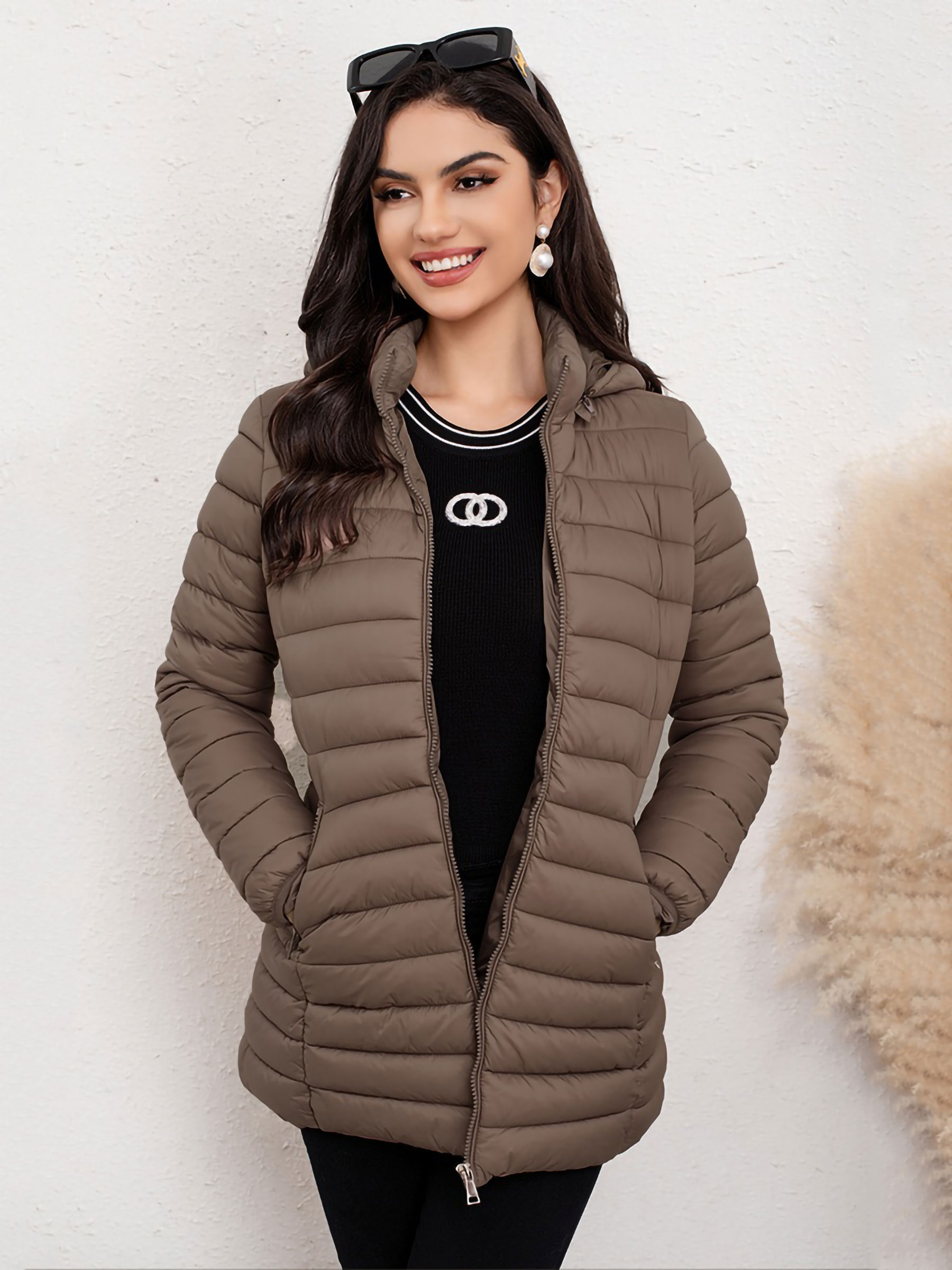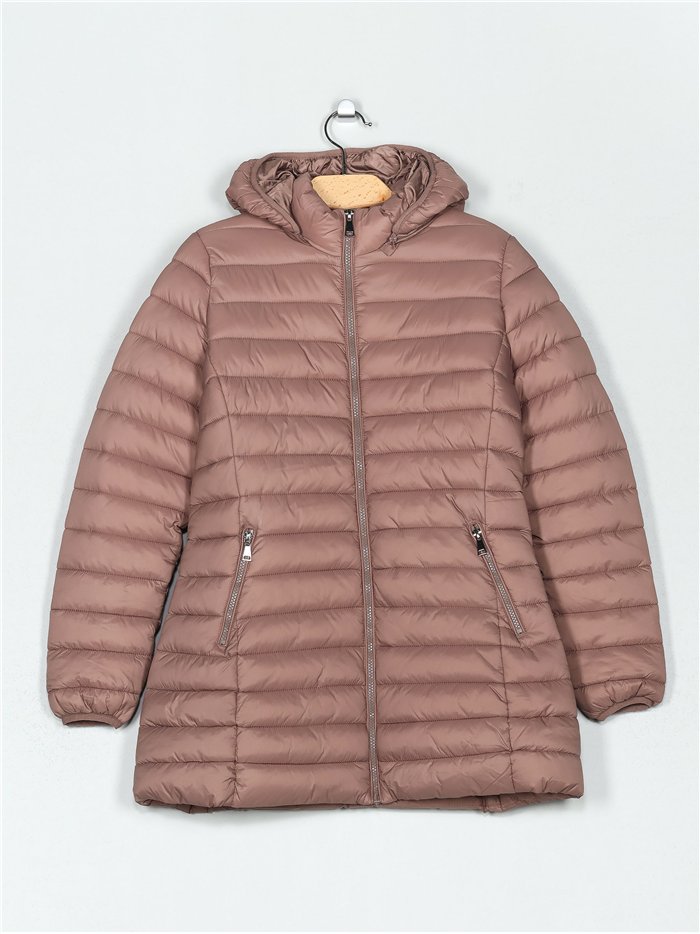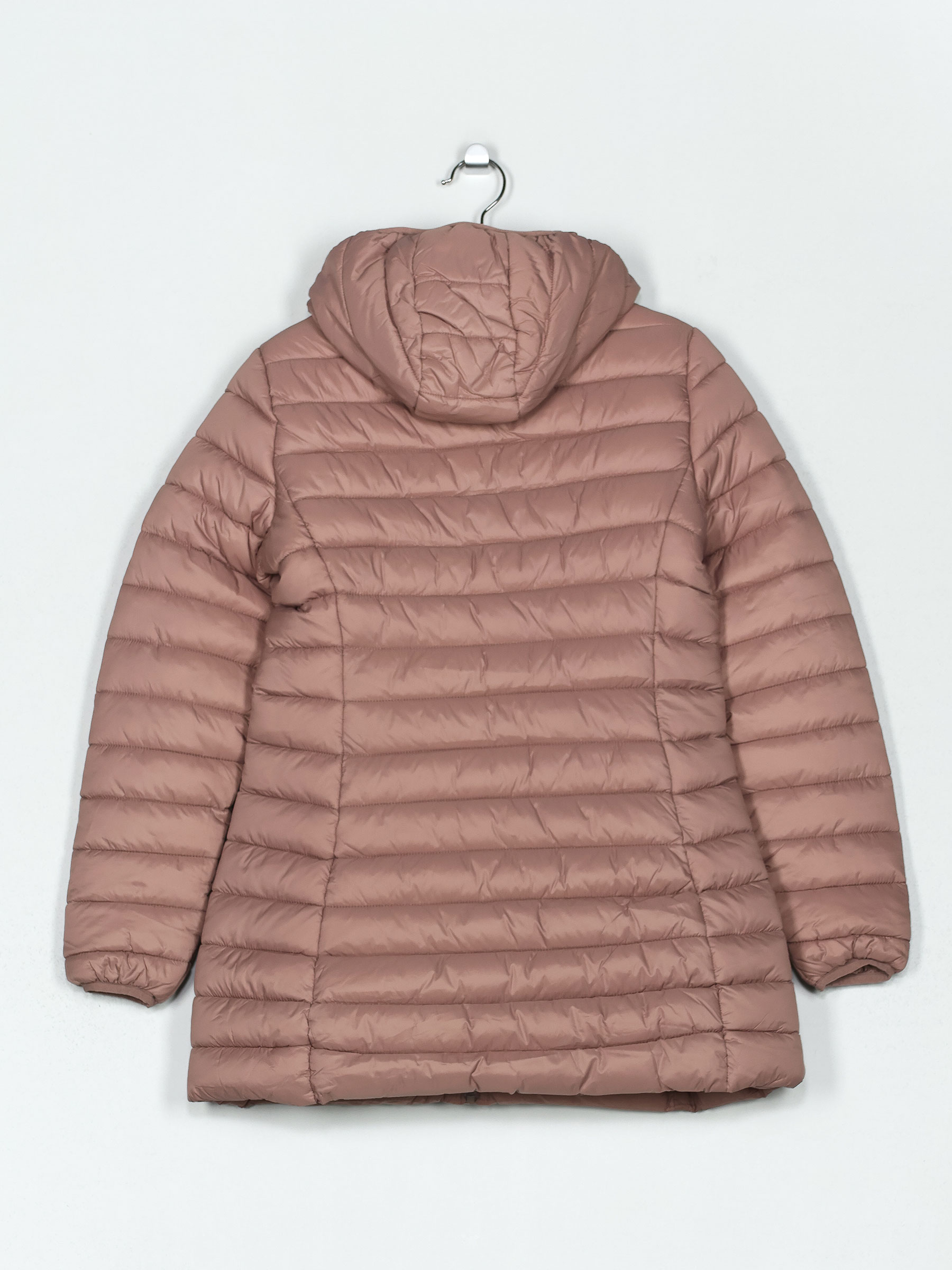 Gepolsterter Anorak. Abnehmbare Kapuze. Seitentaschen mit Reißverschlüssen. Stehkragen. Zentraler Reißverschluss. Lange Ärmel.