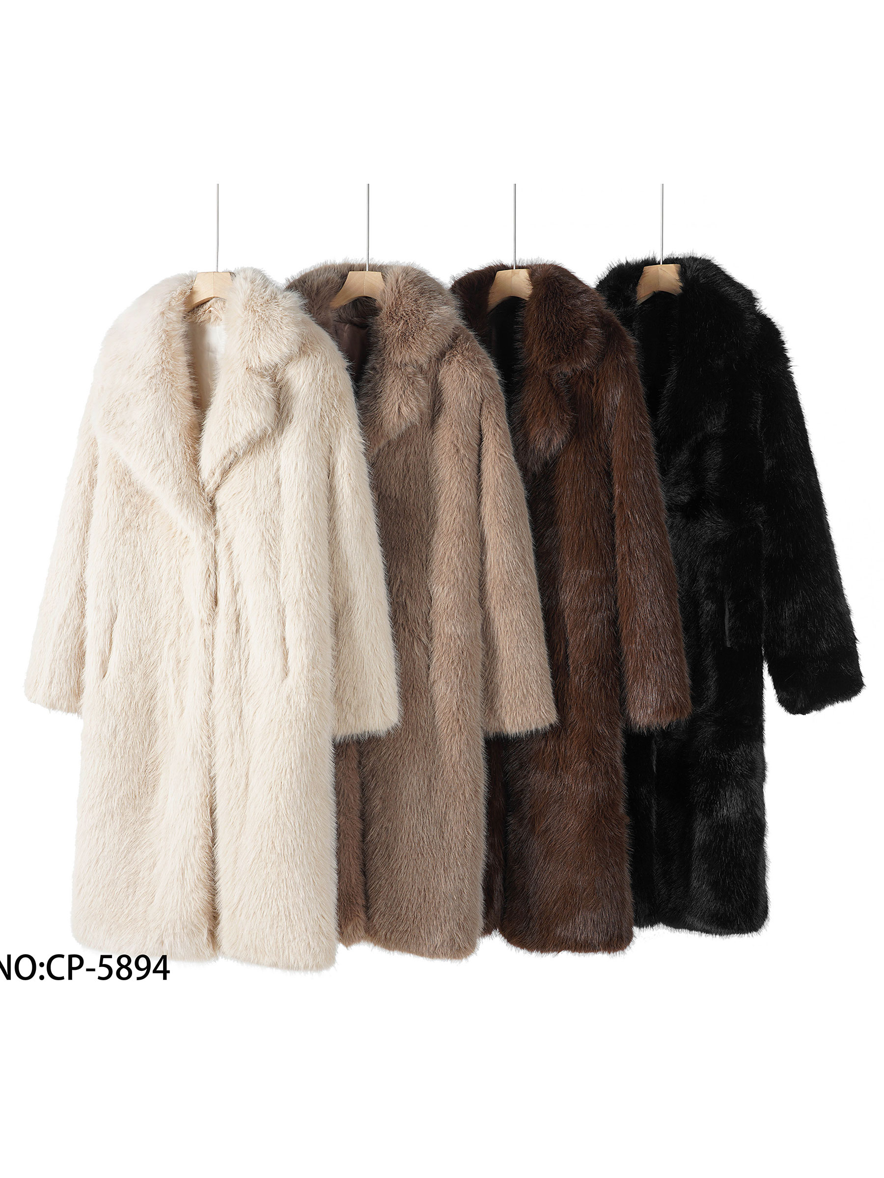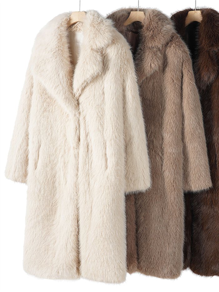 Details des langen Mantels mit Pelzeffekt BF-CP-5894
