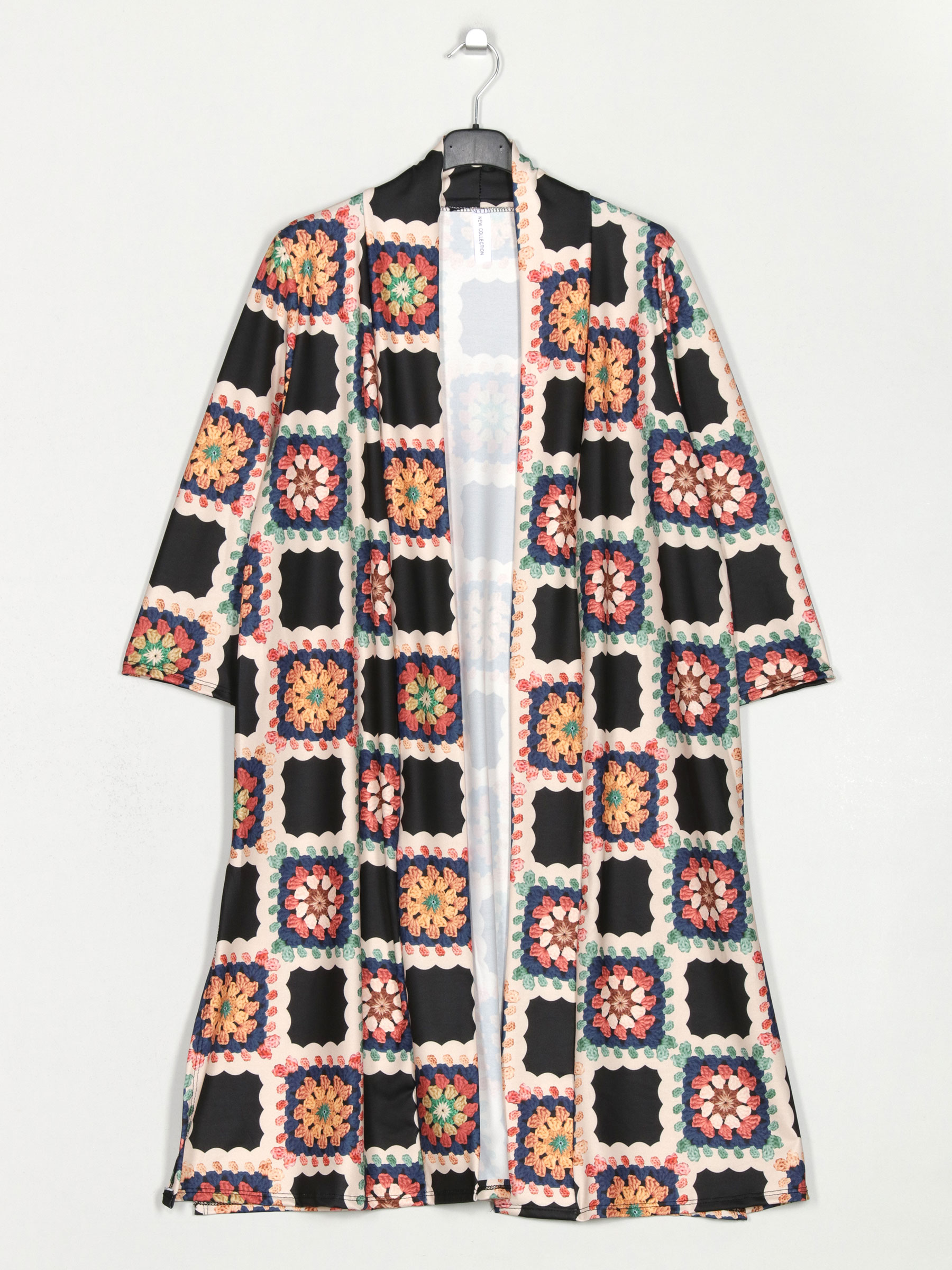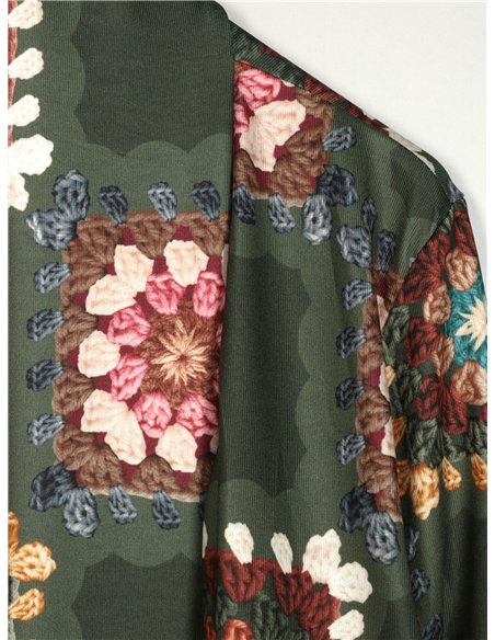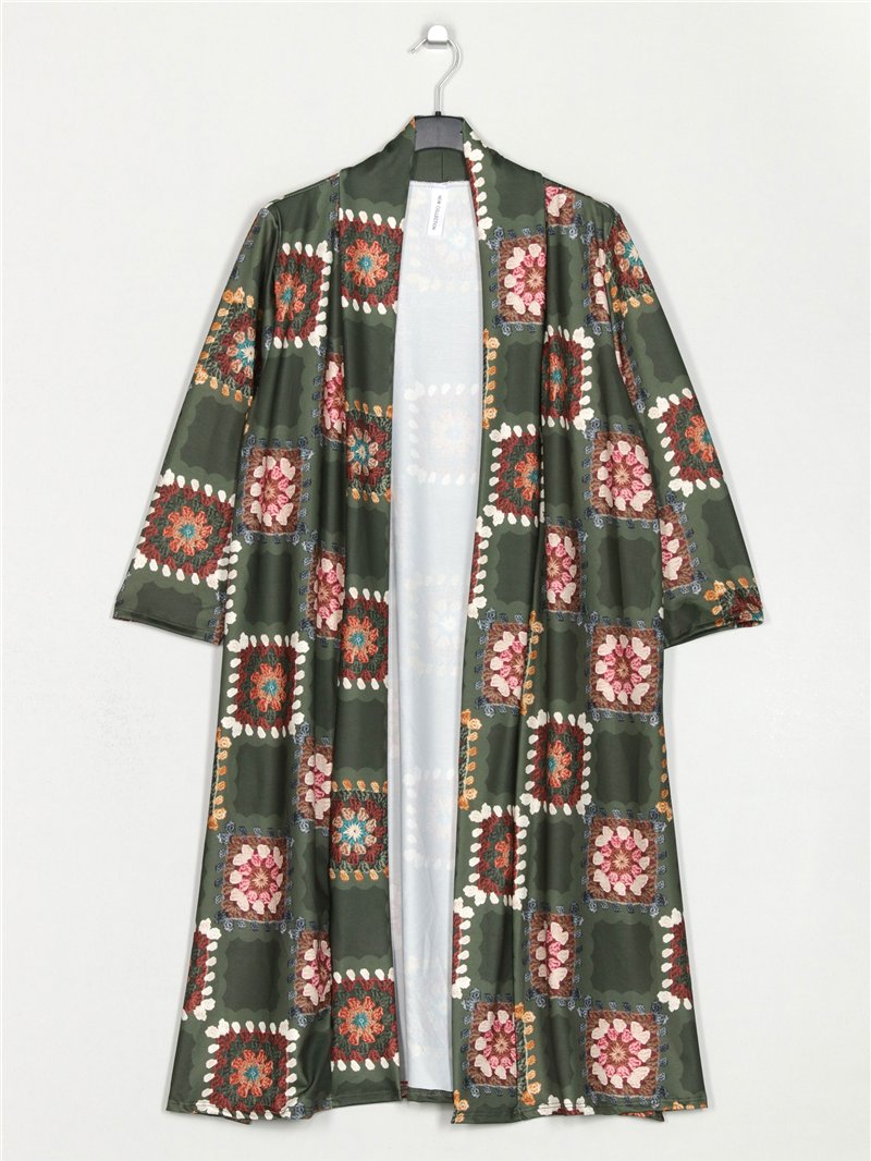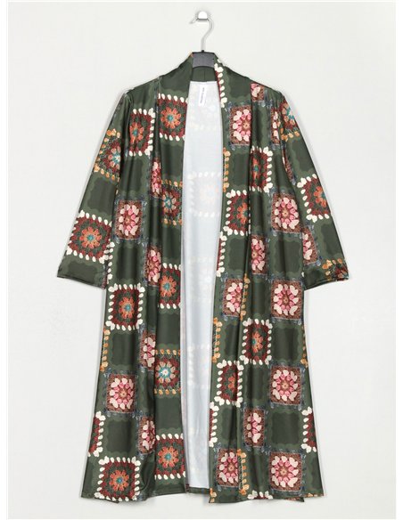 Details der bedruckten langen Jacke T1019-21243P
