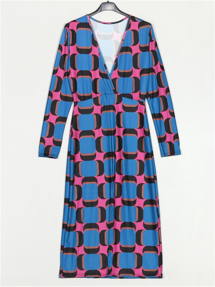 Details of bedrucktem Kleid mit Schlitz T1072-31509-5-MULTI