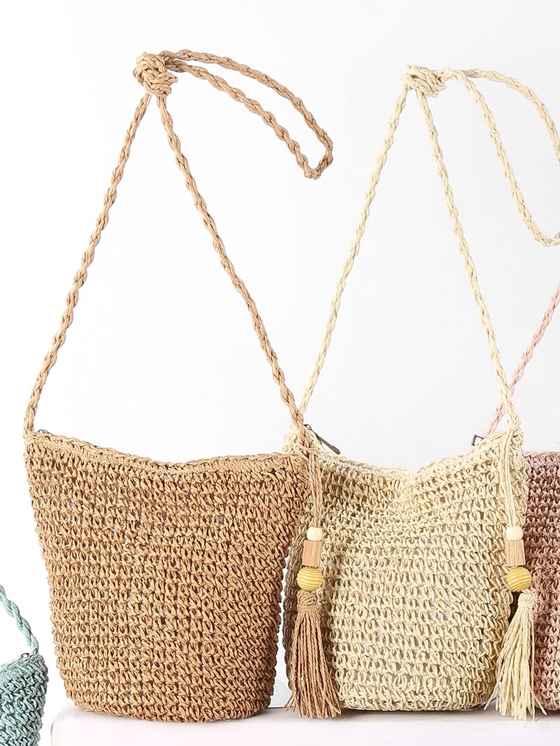 Bast-Schultertasche mit Quaste Bast-Schultertasche mit Quaste