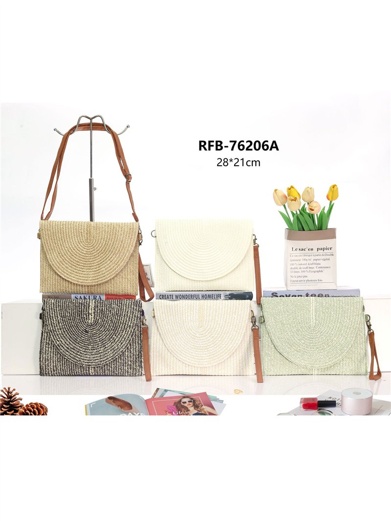 Minimalistische Bast-Umhängetasche mit halbkreisförmiger Klappe