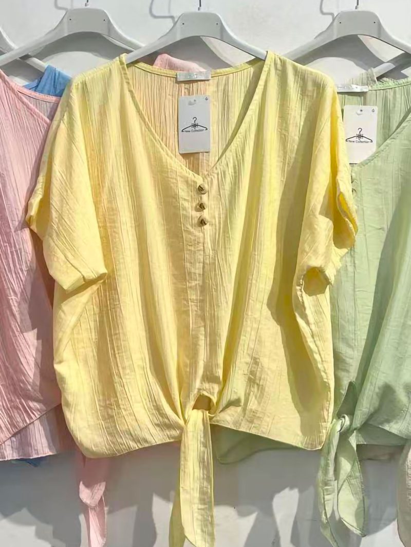 Kurzärmelige, geknotete Bluse