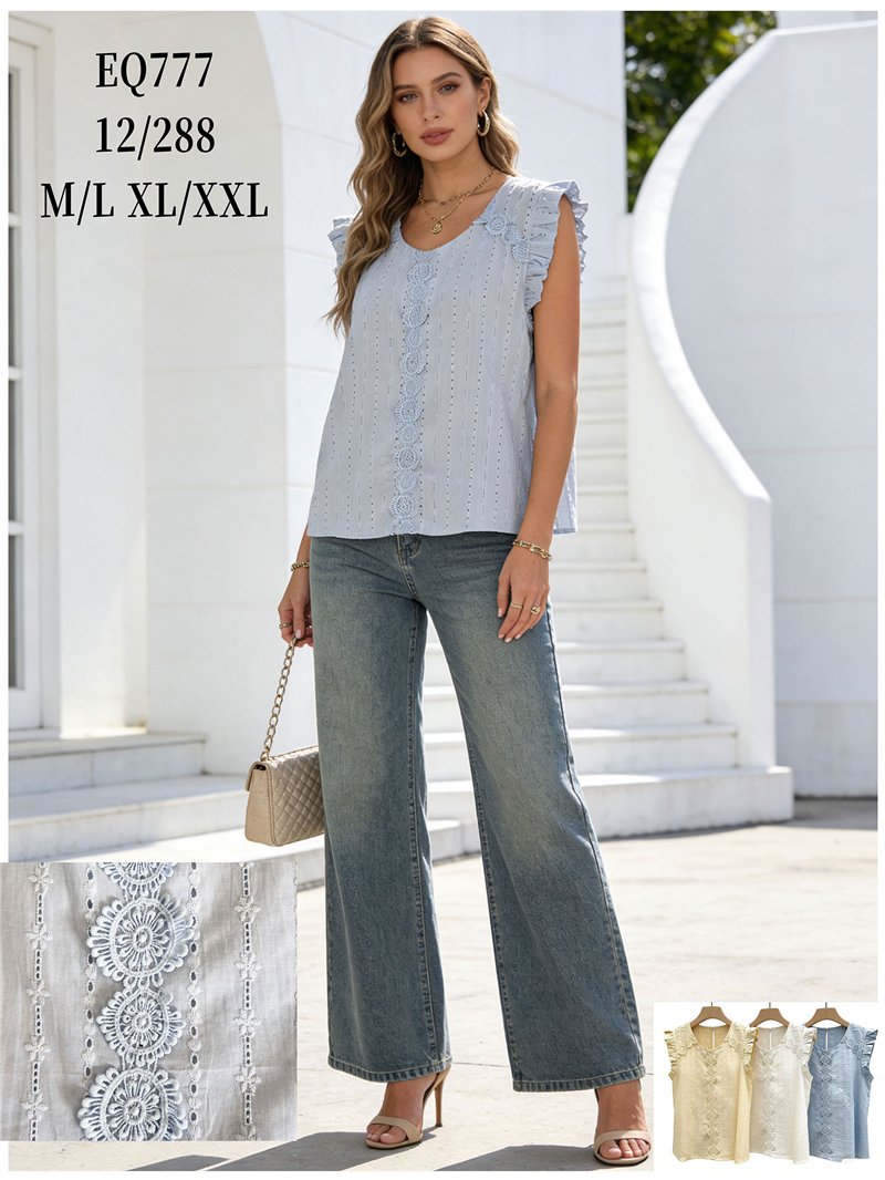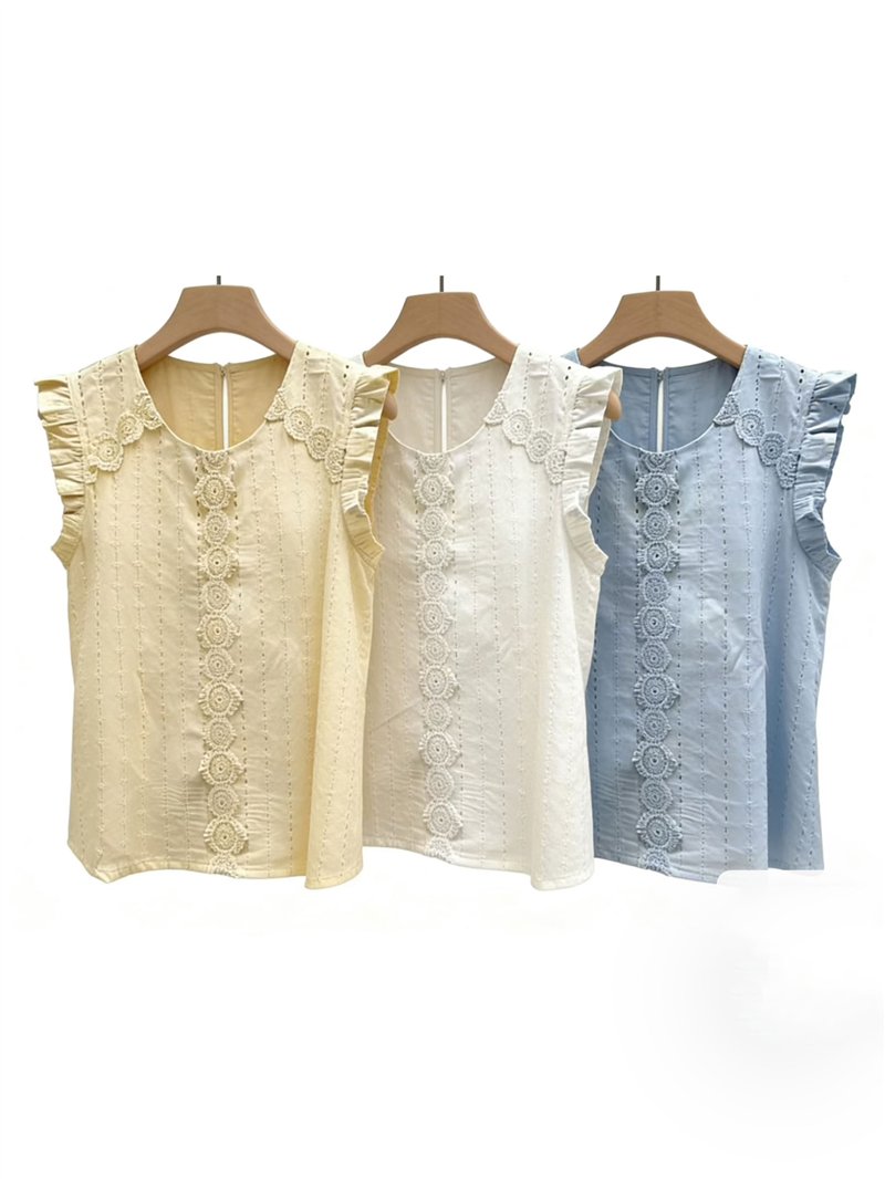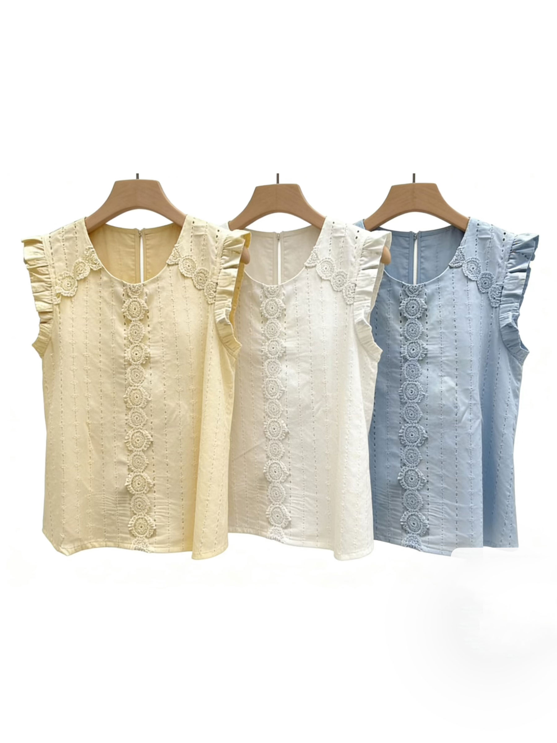 Durchbrochene Bluse mit Rüschenärmeln aus Guipure-Spitze