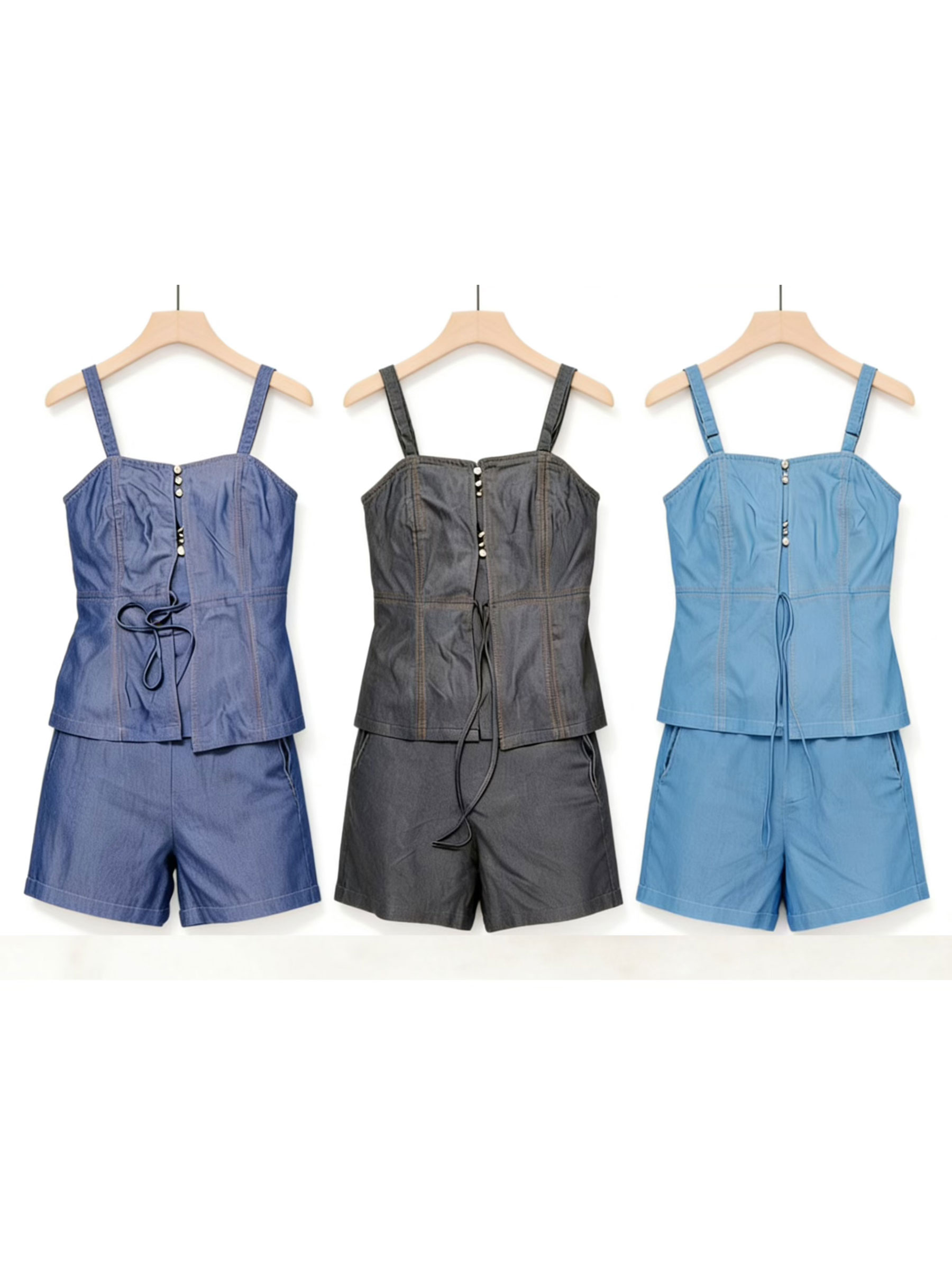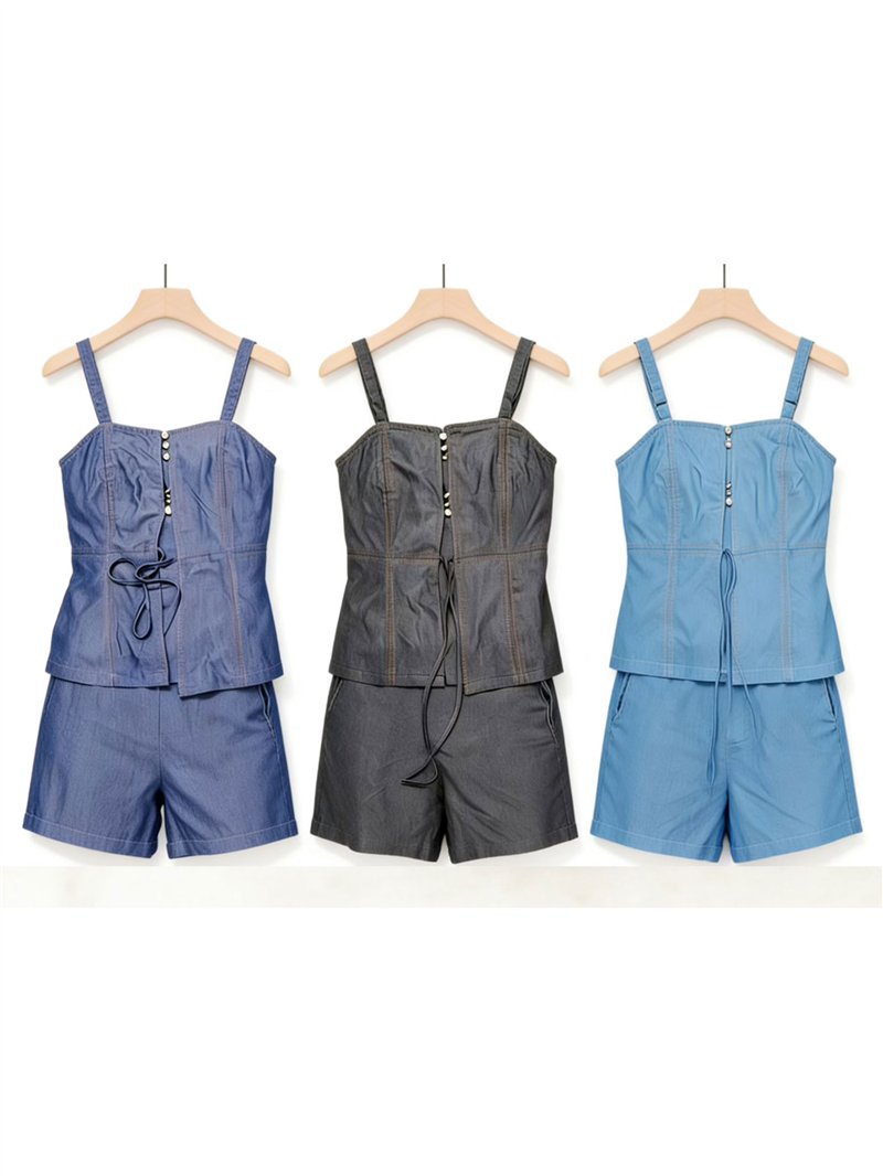Denim-Tanktop und Shorts Set.