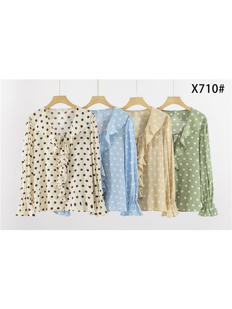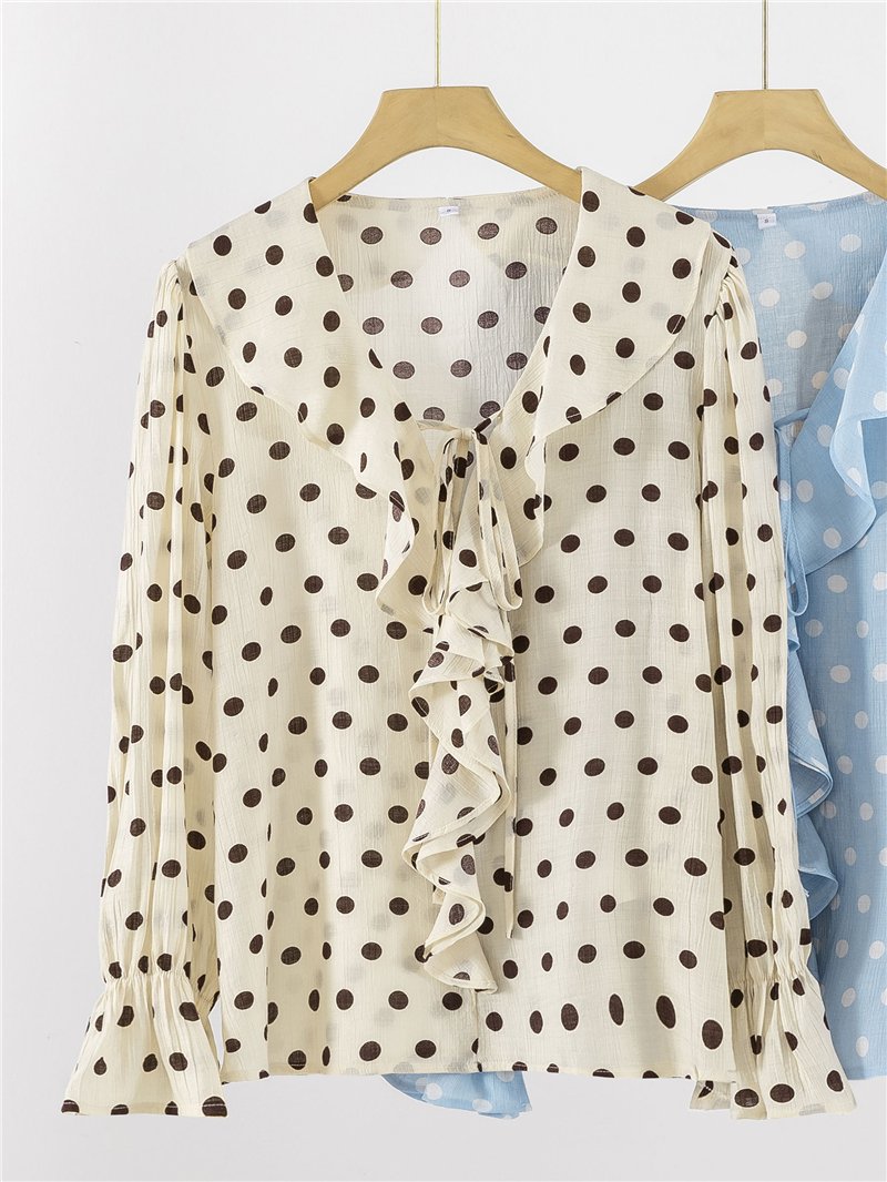 Gepunktete Bluse mit Rüschen