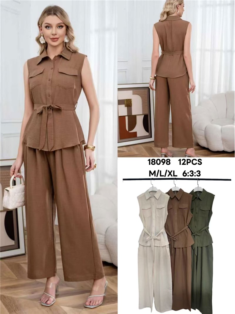 Ärmelloses Blusenset mit Gürtel und weit geschnittener Hose