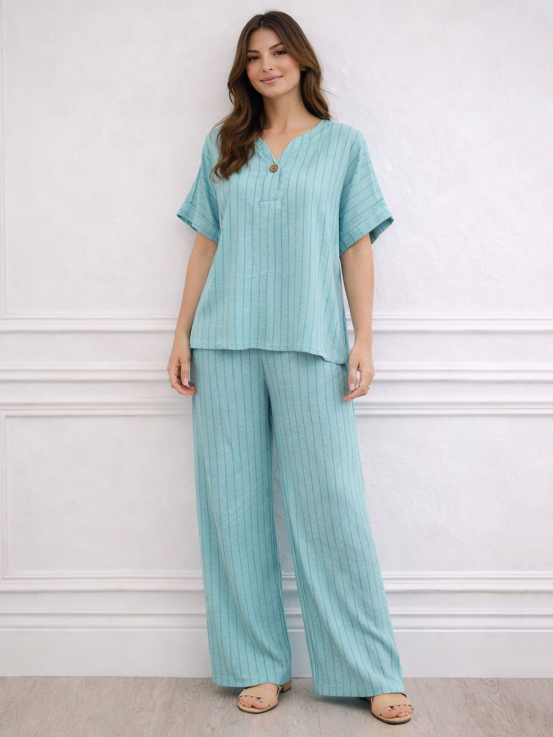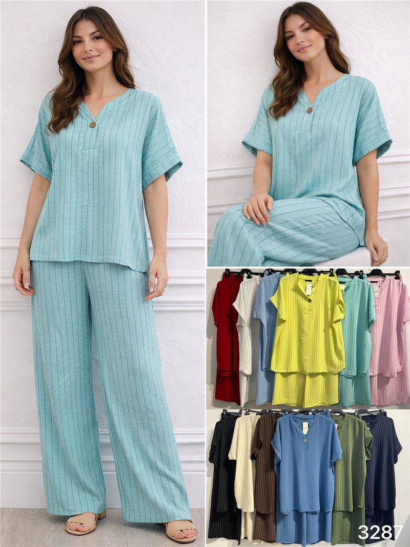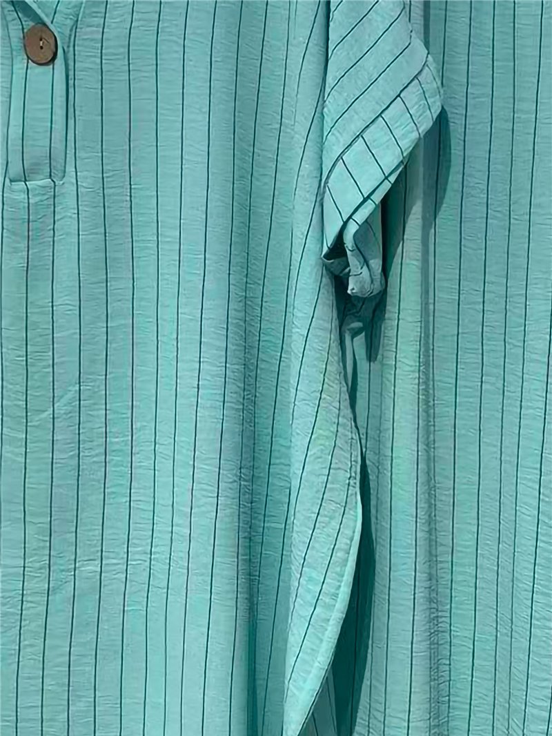 Gestreiftes, fließendes Blusen- und Hosen-Set in Übergröße.