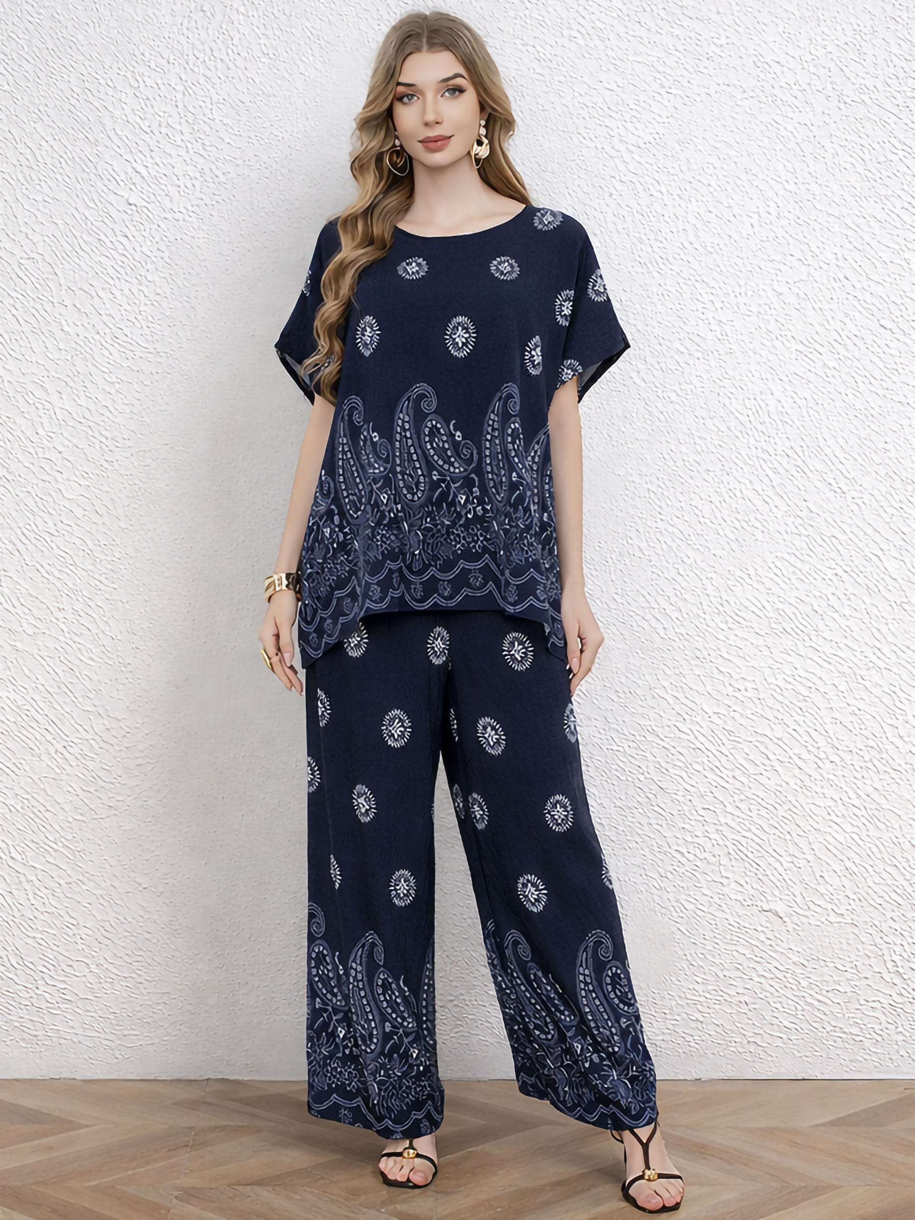 Set aus Kaschmirbluse und weit geschnittener Hose