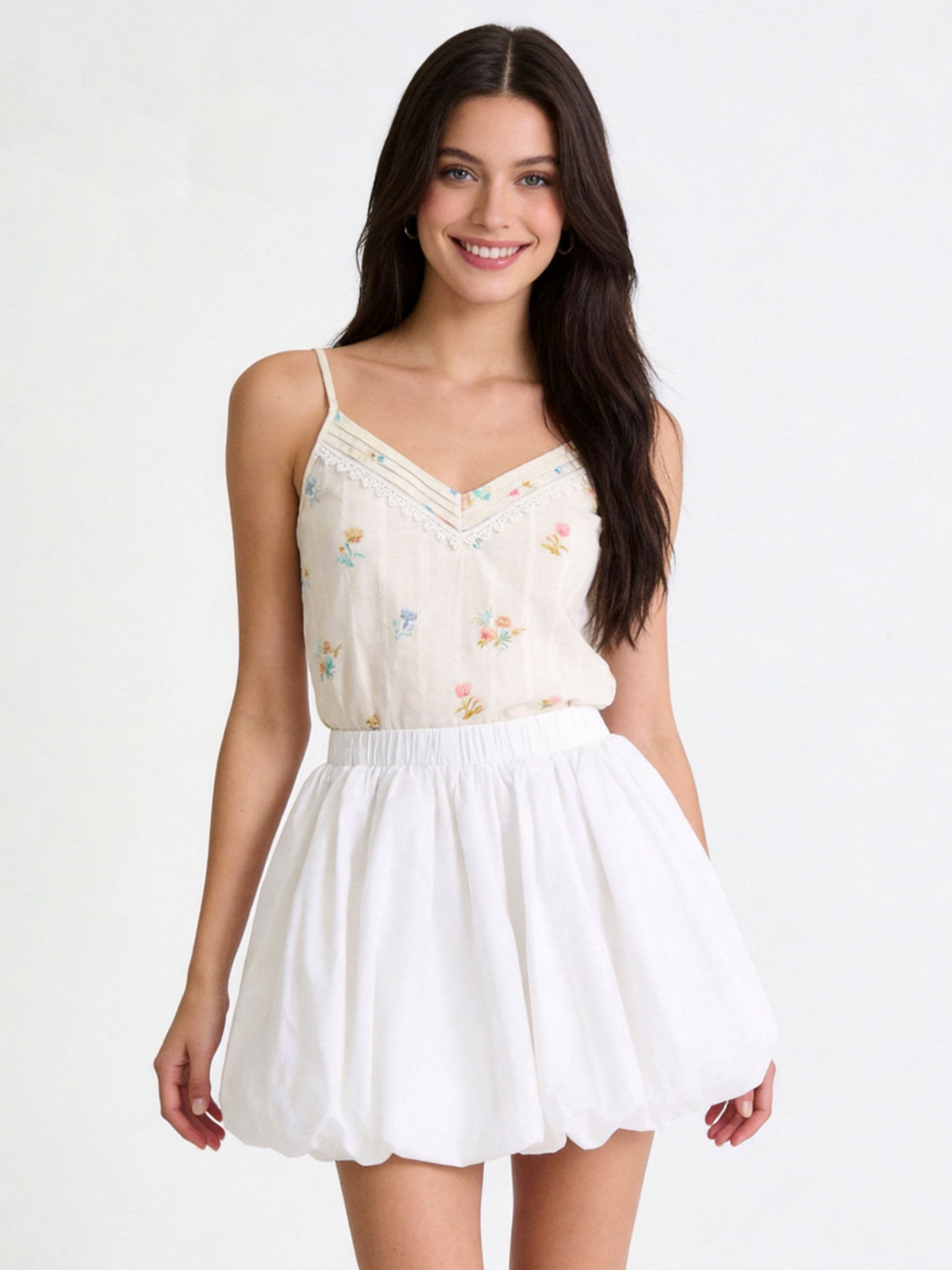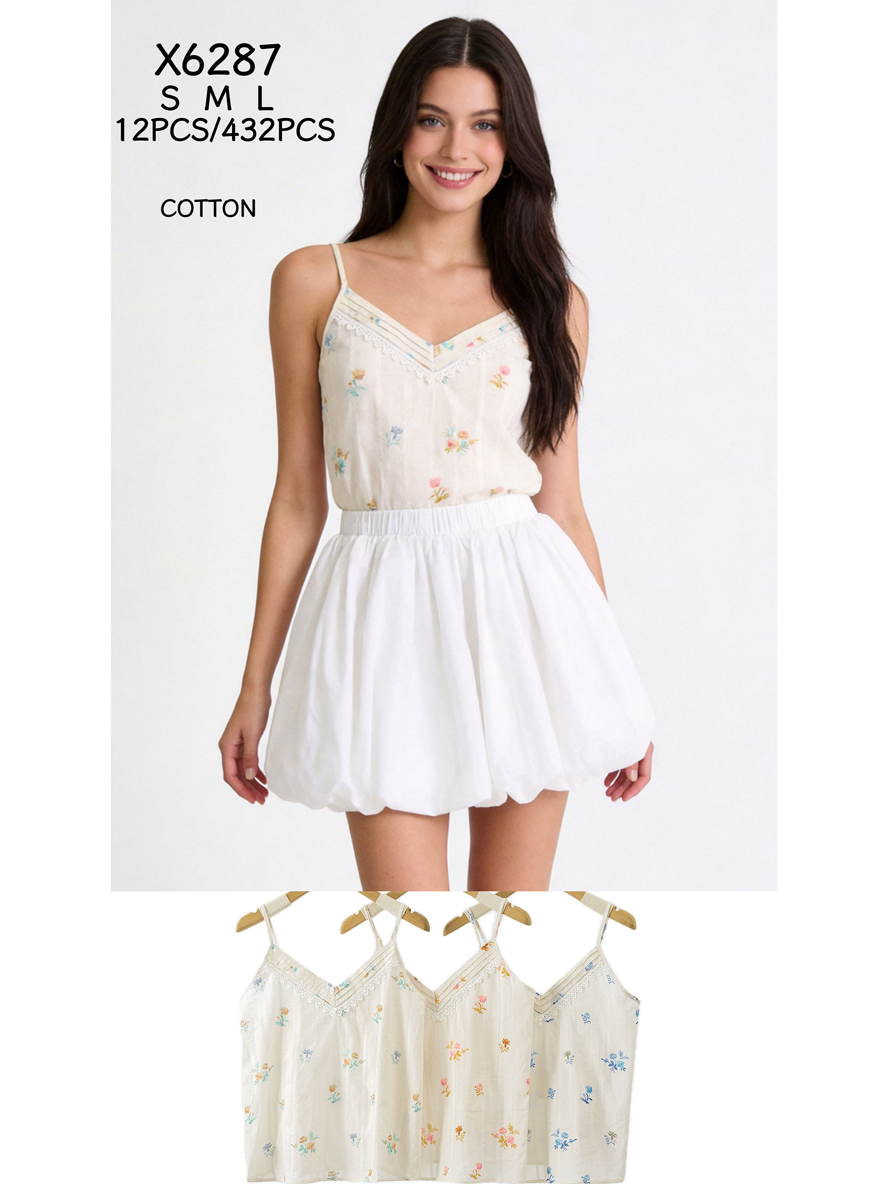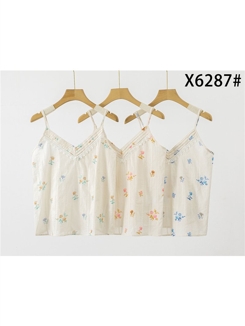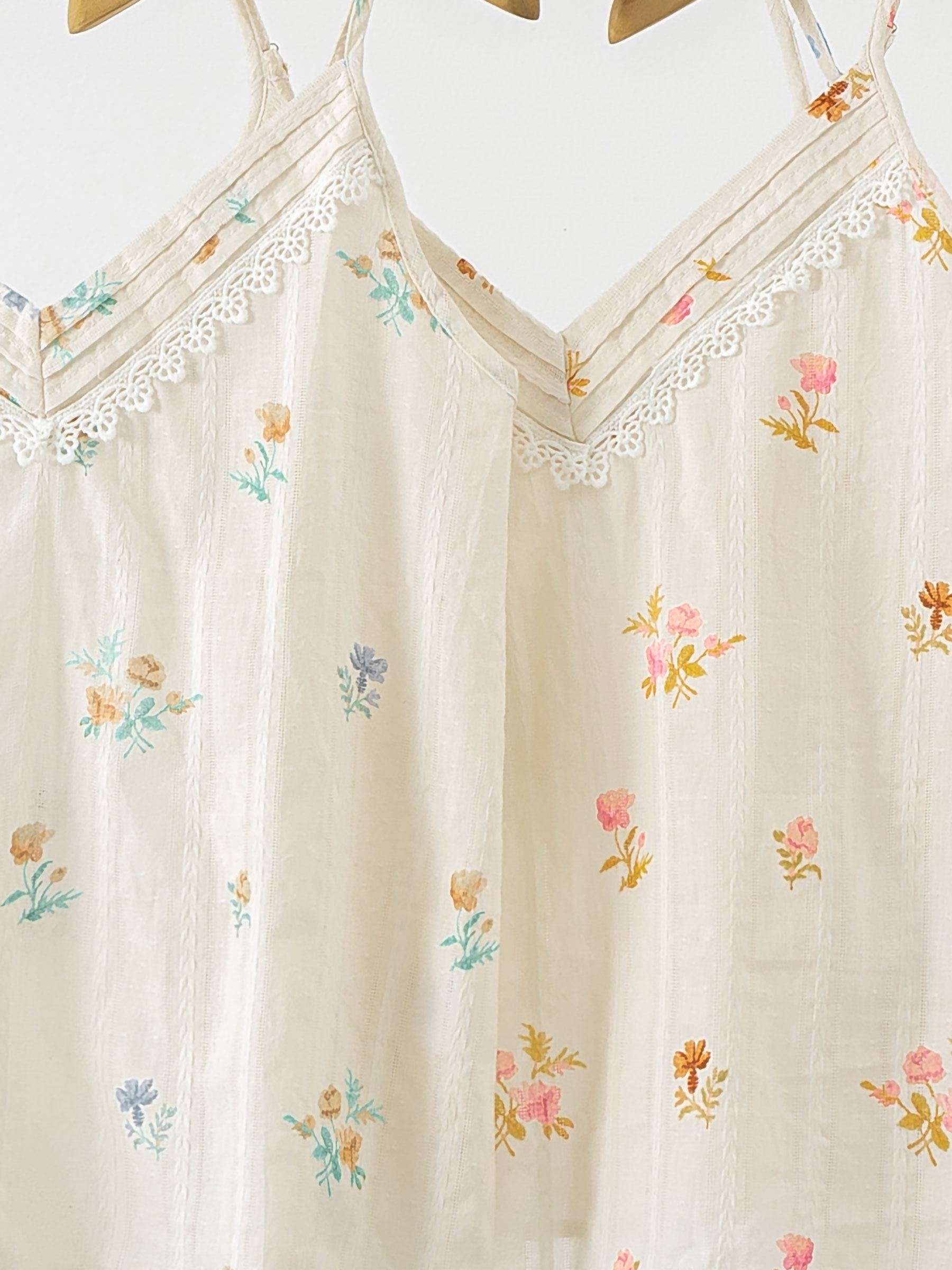 Baumwoll-Camisole mit Blumenmuster, dünnen Trägern und V-Ausschnitt.