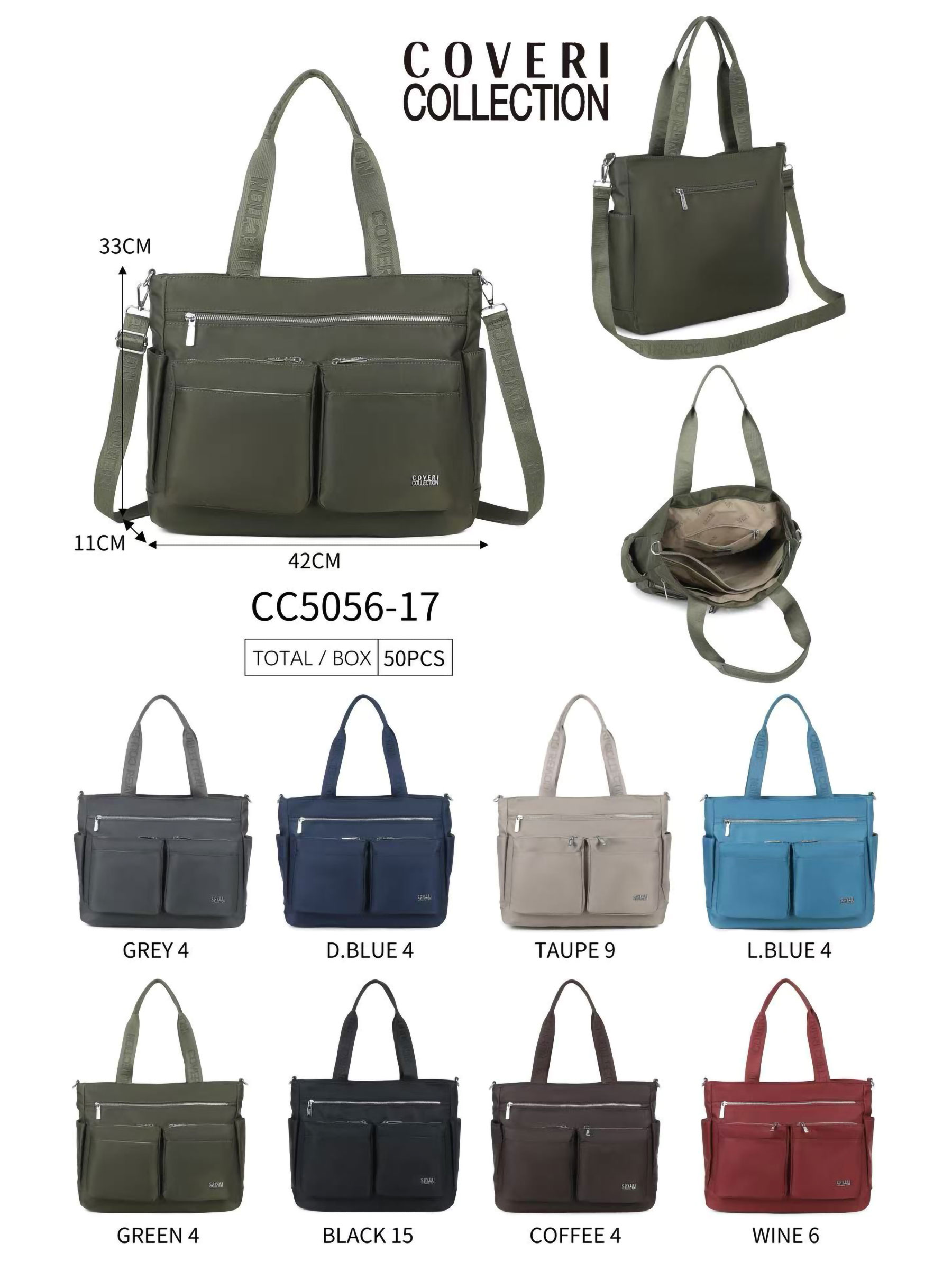 Details von CG-CC5056-17 Nylon Shopper Tasche mit doppelter Fronttasche.