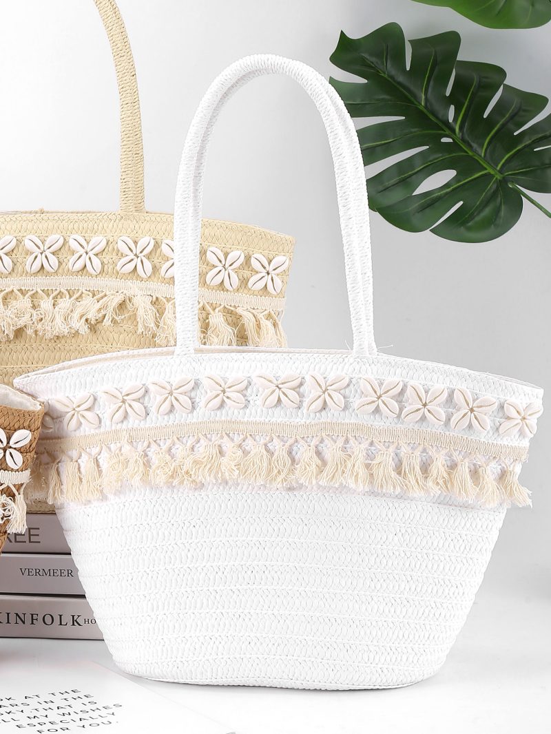 Einkaufstasche aus Bast mit Muscheln und Quaste