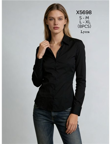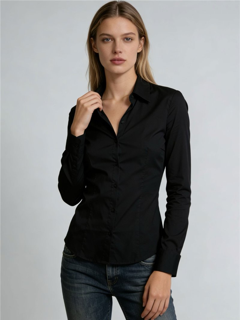 Lycra-Hemd. Hemdkragen. Knopfleiste. Lange Ärmel. Abnäher vorne. Figurbetonter Schnitt.