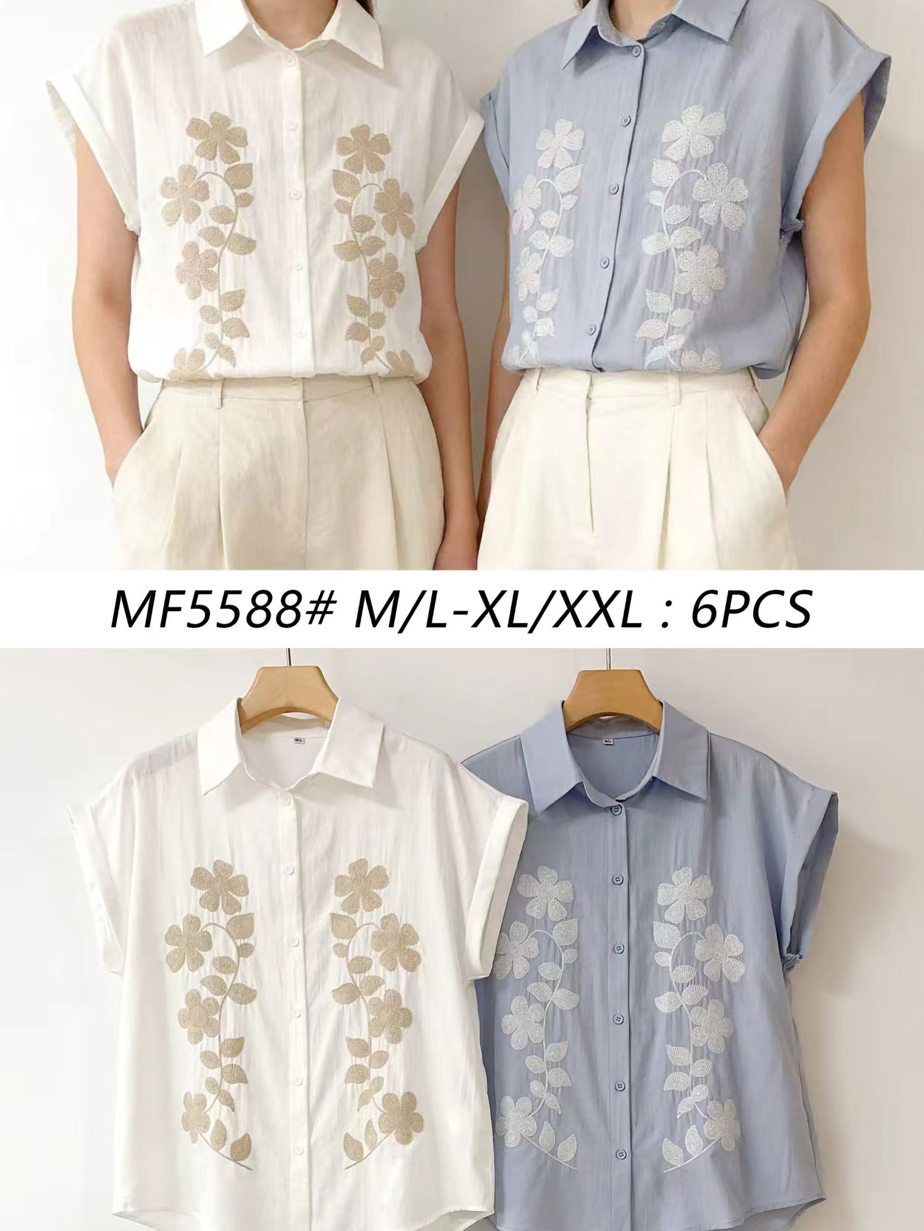 Hemd mit klassischem Kragen und Knöpfen. Blumenstickerei auf der Vorderseite.