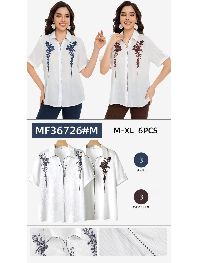 Bluse mit Blumenstickerei. Kontrastfarbene Paspelierung. Reverskragen. Kurze Ärmel. Knopfleiste.