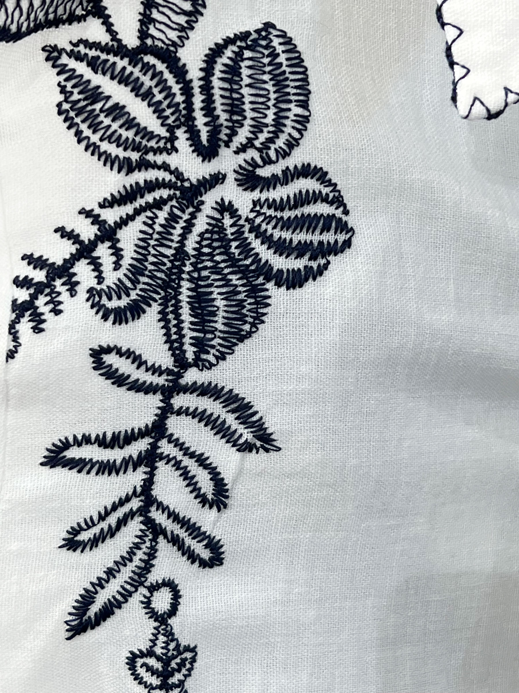 Bluse mit Blumenstickerei und kontrastierender Borte