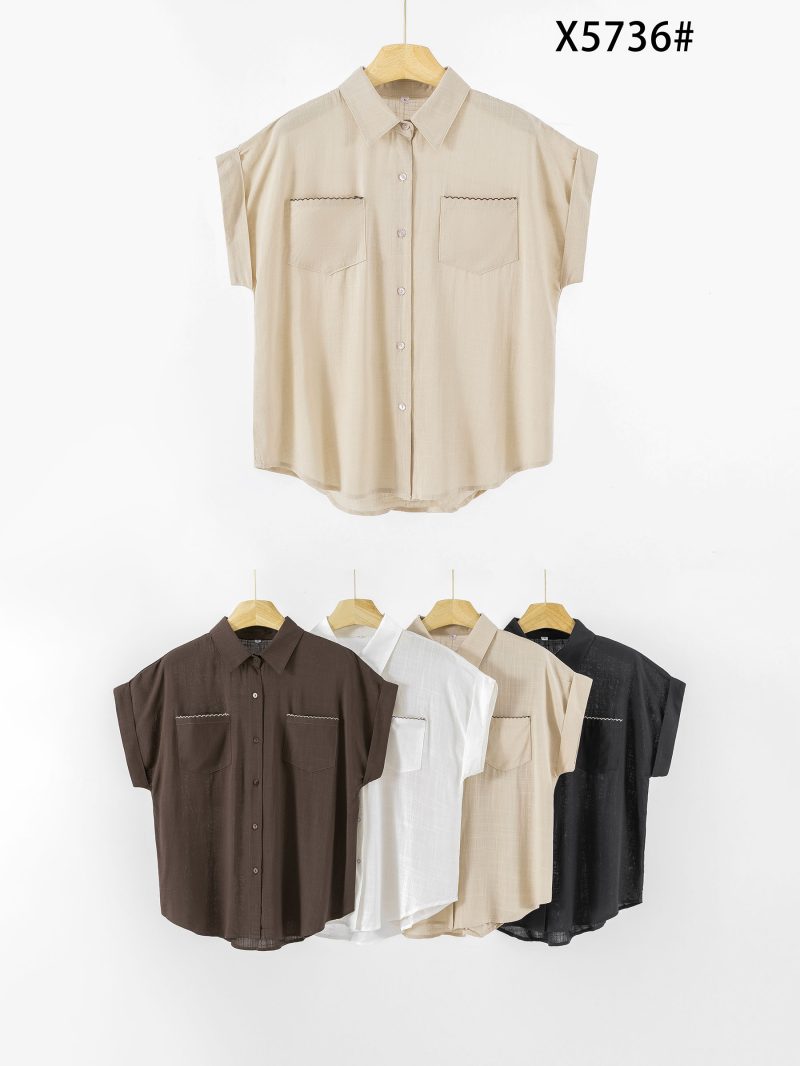 Kurzärmeliges Hemd in Leinenoptik mit Taschen.