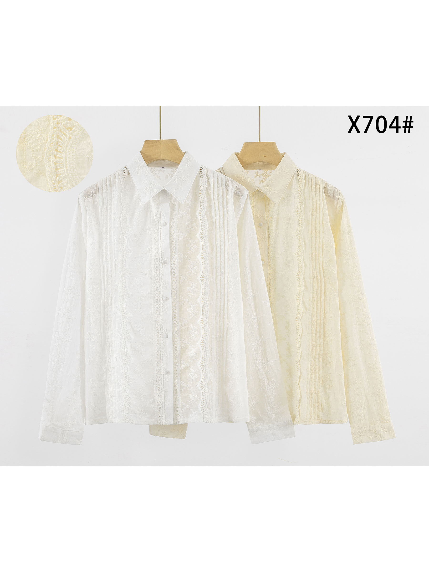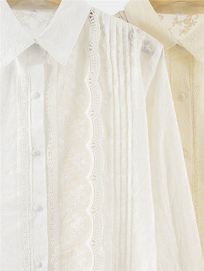 Baumwollhemd mit Biesen und Spitze