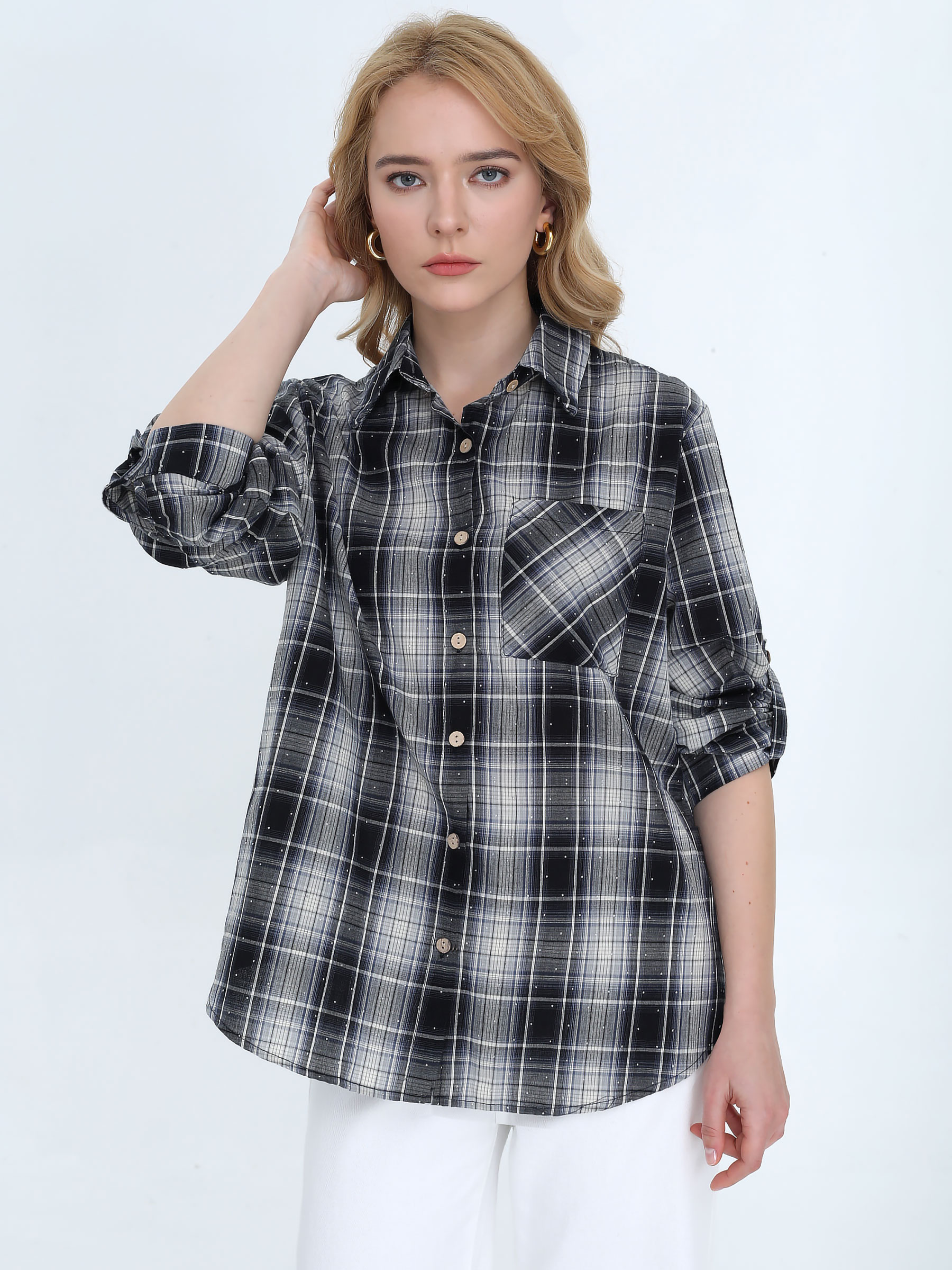 Kariertes Hemd mit glitzernden Details