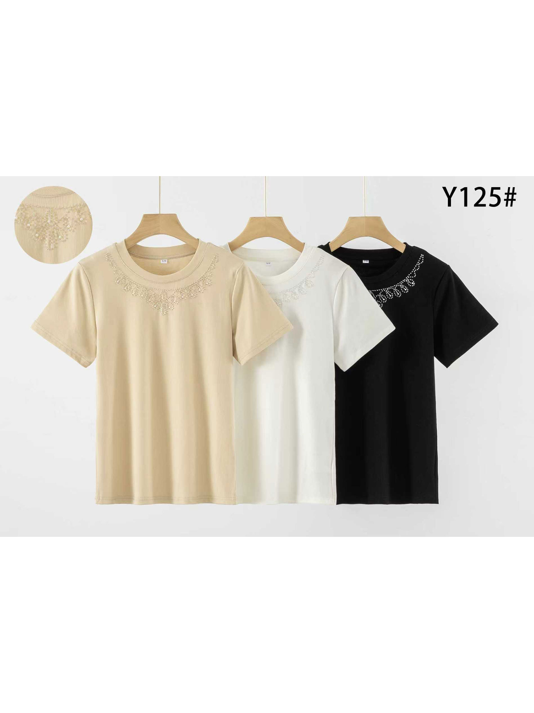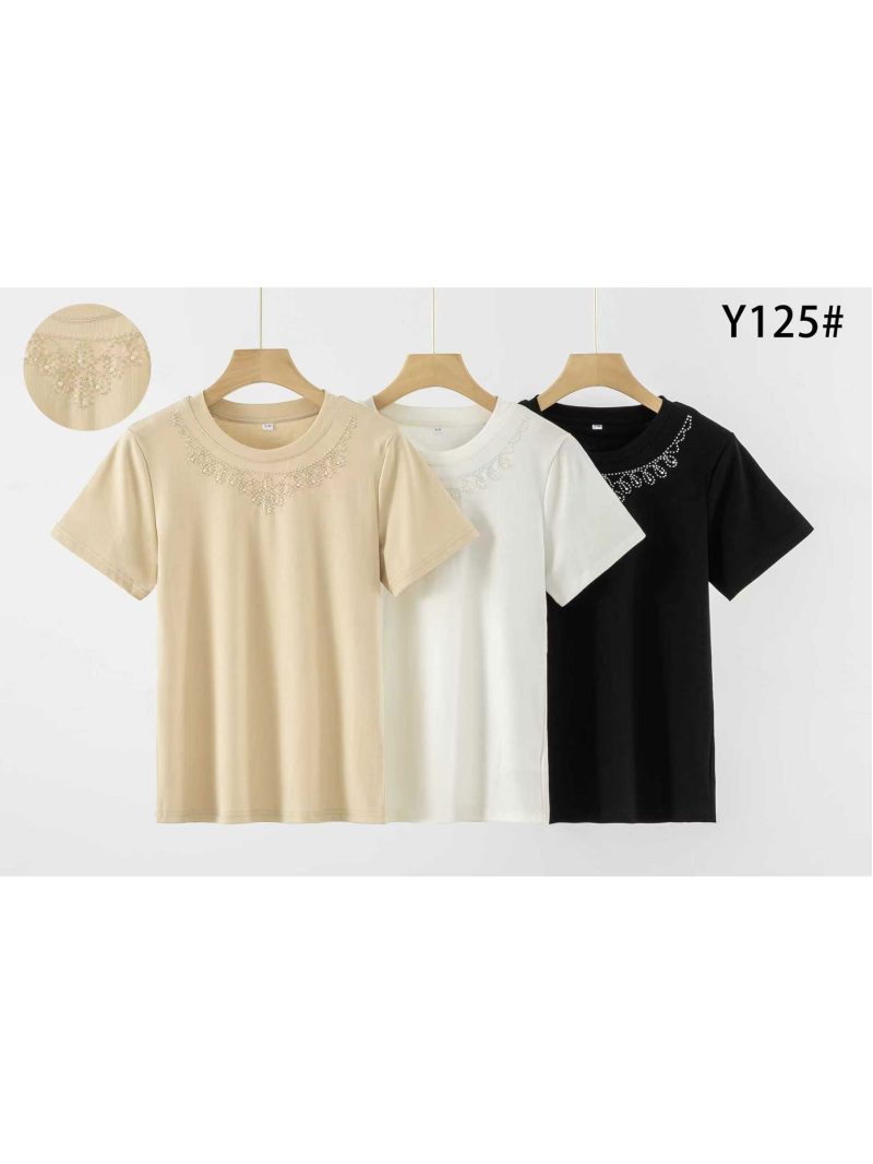 Baumwoll-T-Shirt mit Perlenkragen