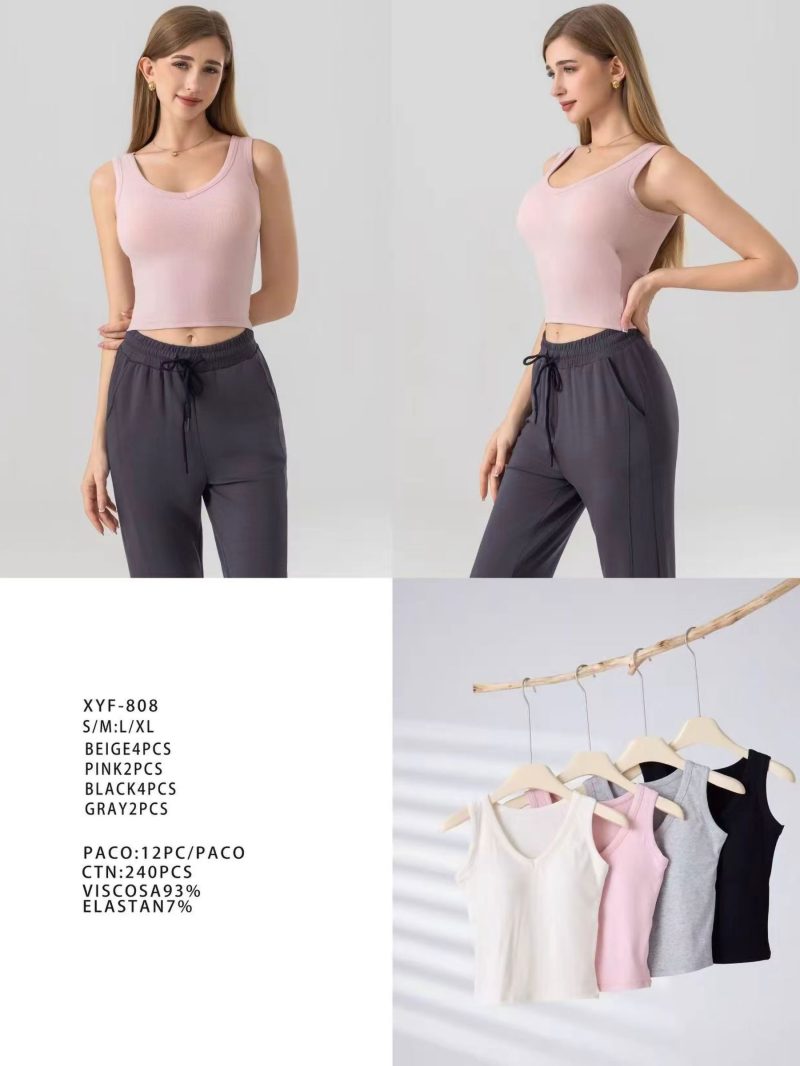 Geripptes Oberteil mit V-Ausschnitt