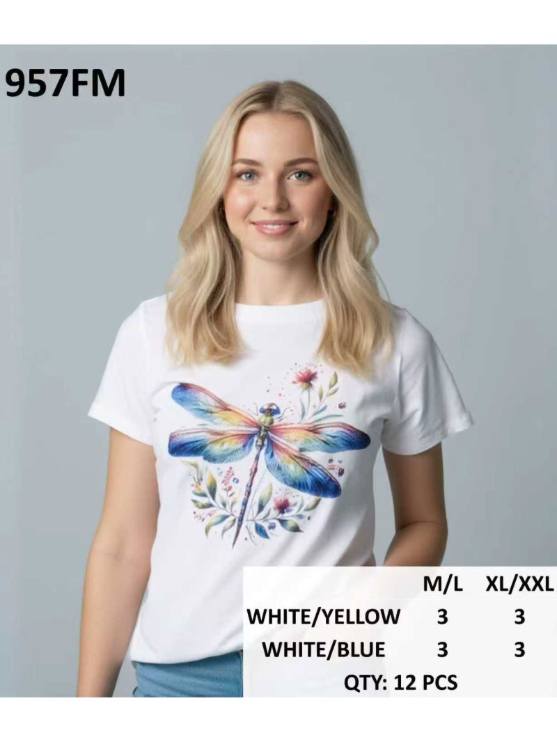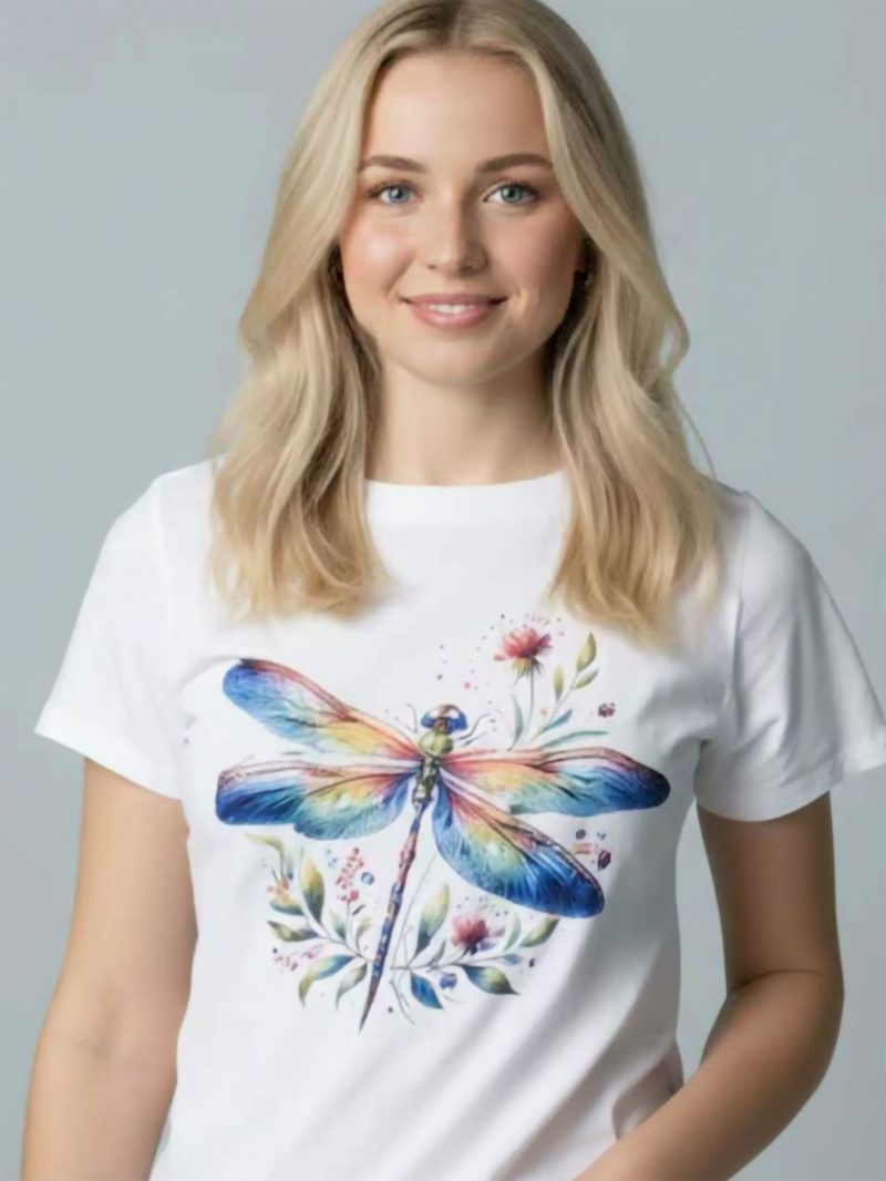 T-Shirt mit Libellenmotiv im Aquarellstil.