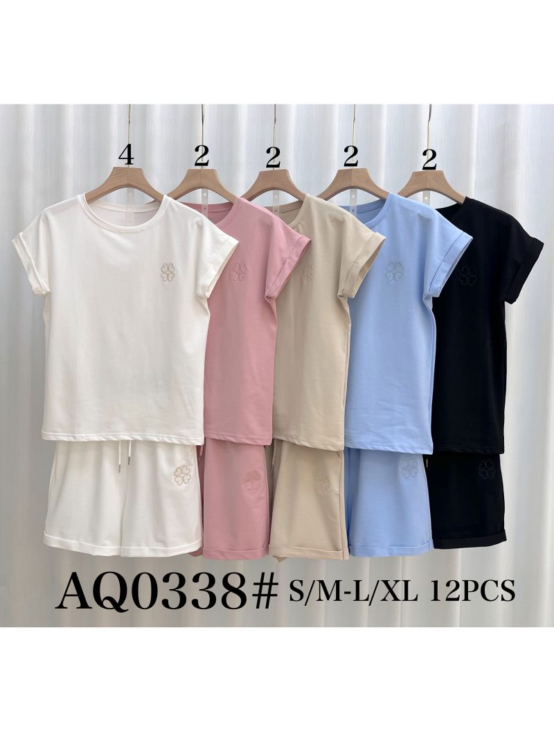 Besticktes Kleeblatt-Set: T-Shirt und Shorts.