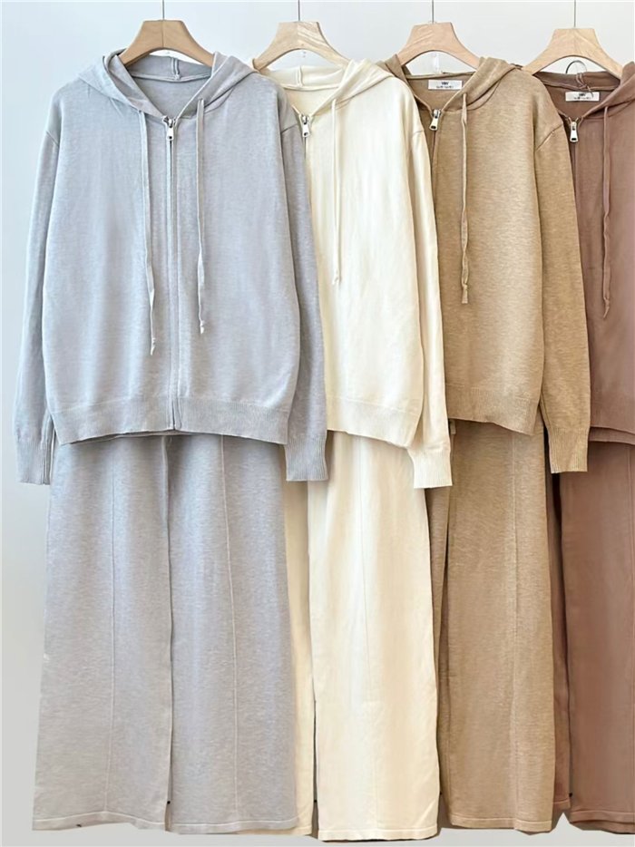 Details des Set Sweatshirt Hoodie Zipper + Straight Pants FA-5680