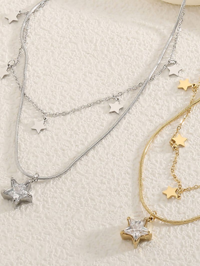Doppelstern-Halskette mit Zirkonia