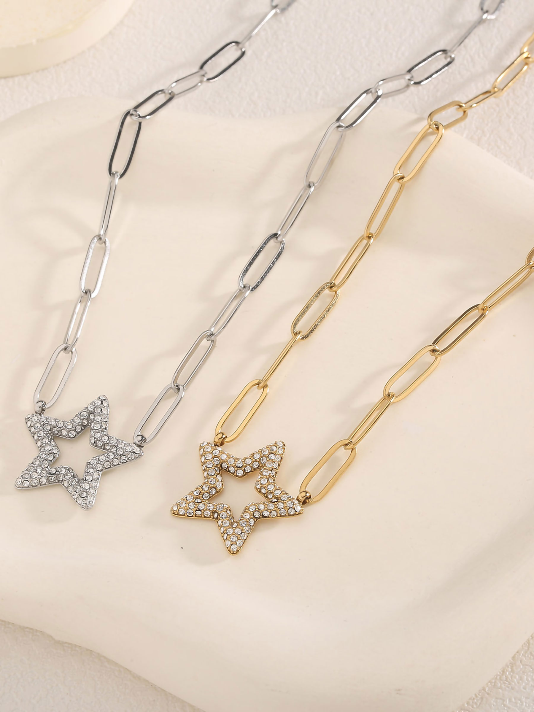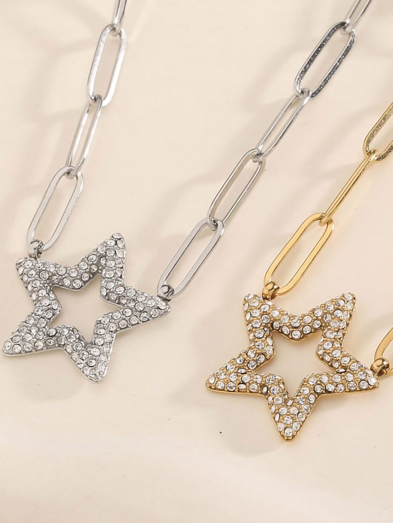 Halskette mit Stern-Gliederkette und Zirkonia