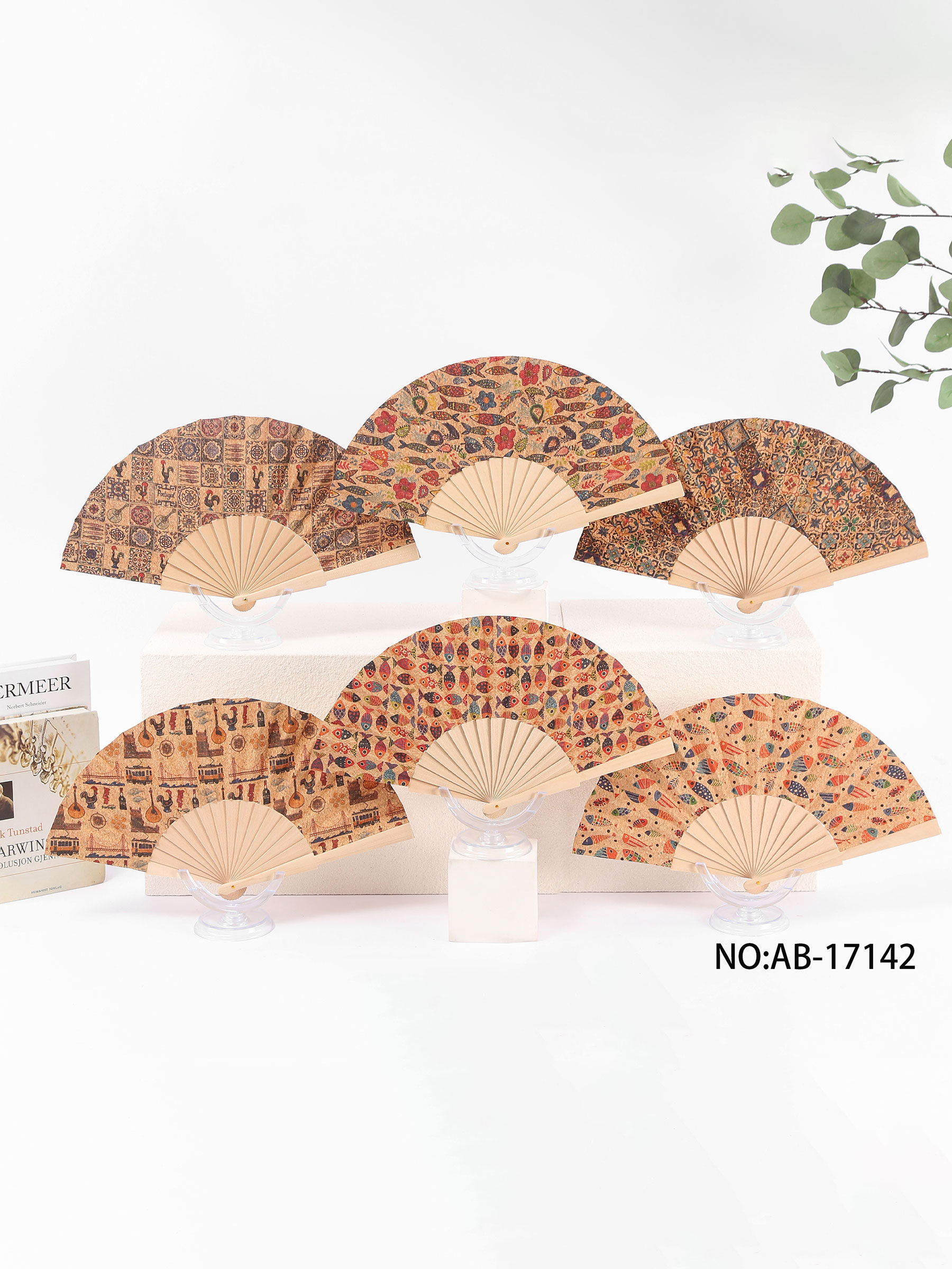 Fächer aus Holz mit aufgedruckten Motiven. Einseitig. Verschiedene Farben.