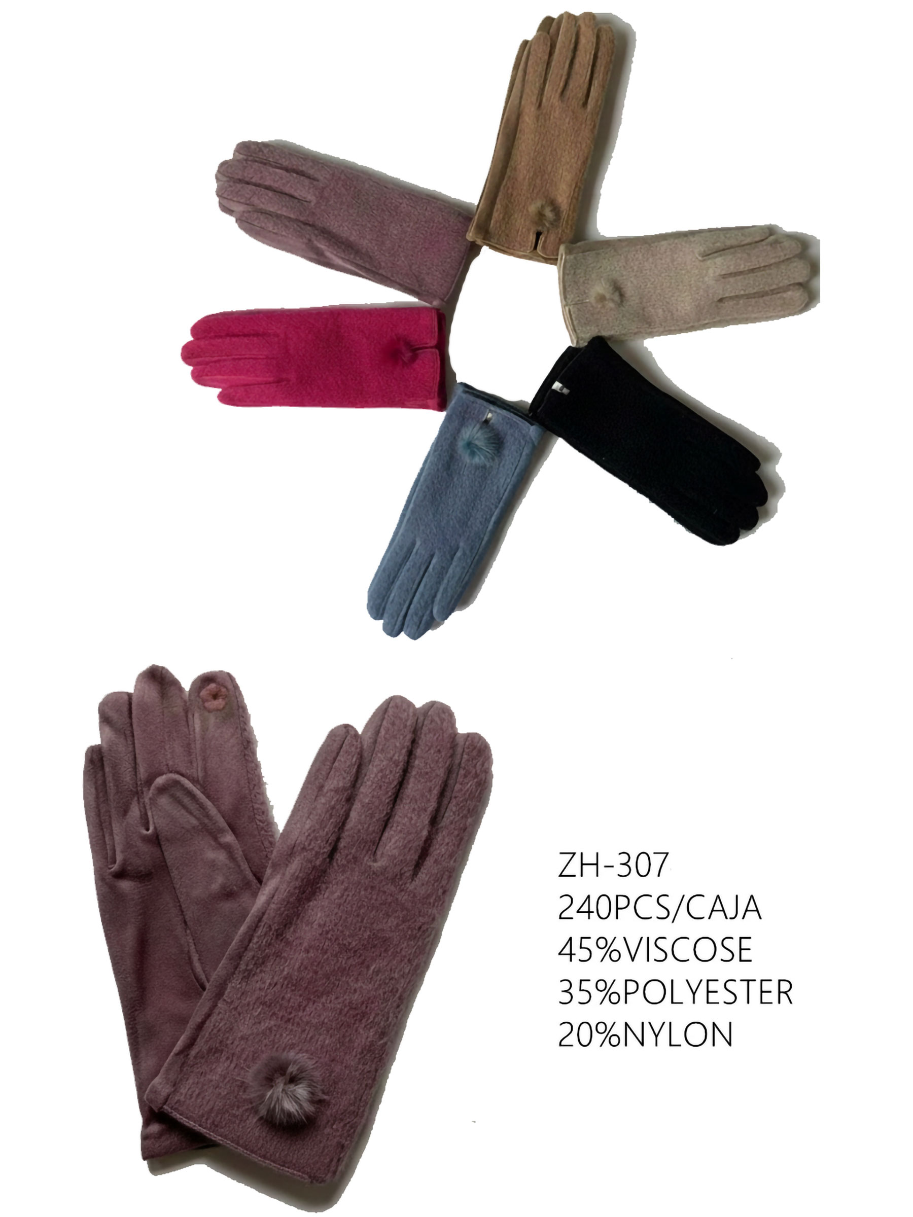 Details von Handschuhen mit Pompon aus Pelz und Handfläche aus Wildleder-Effekt HY-ZH-307