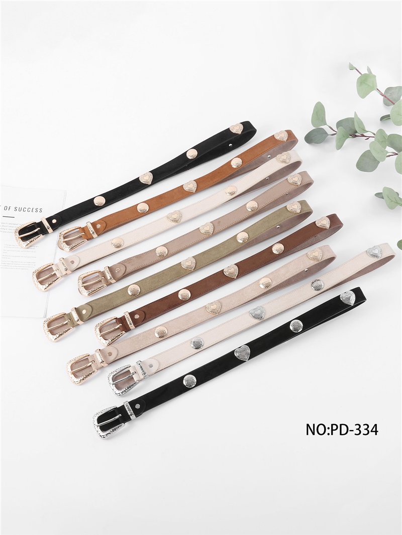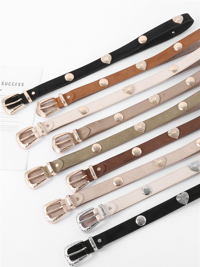 Schmaler Gürtel in Wildlederoptik mit metallischen Herzen.
