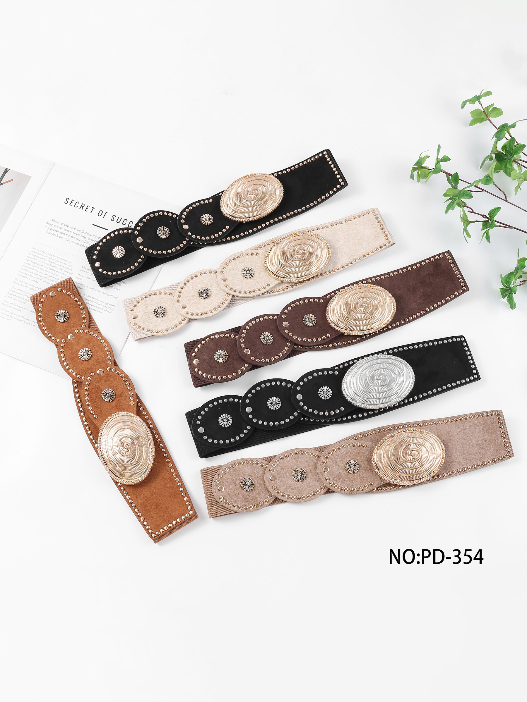 Breiter, elastischer Gürtel in Wildlederoptik mit ovalem Concho