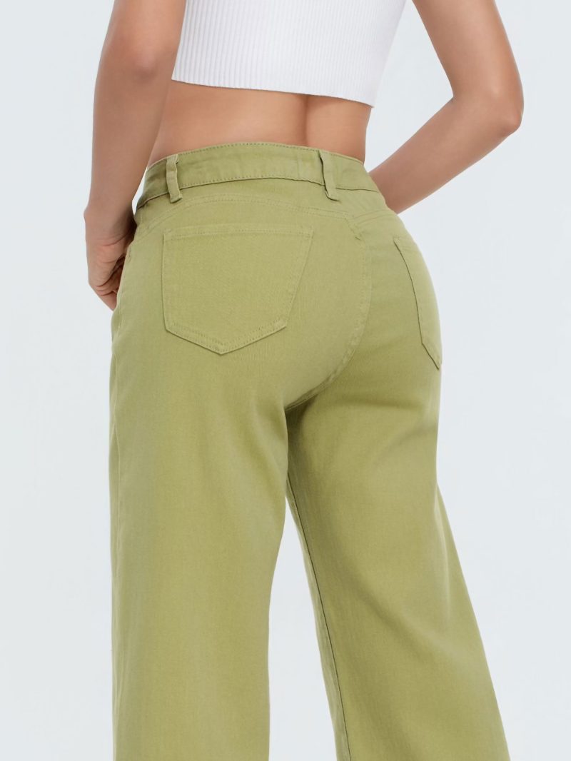 Jeans. Elastischer Stoff. Hohe Taille. Reißverschluss und Knopfverschluss. Vordertaschen. Gesäßtaschen. Weites Bein.