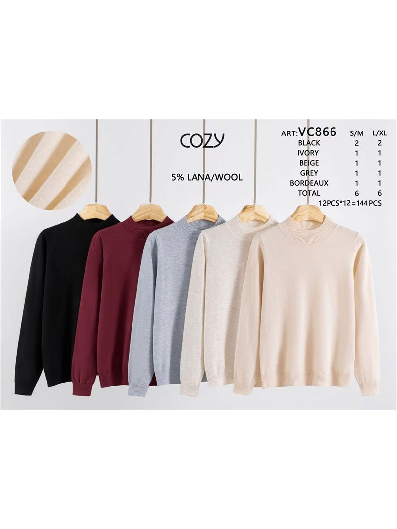 Details des Basic-Pullover mit Perkins-Kragen LS-VC866