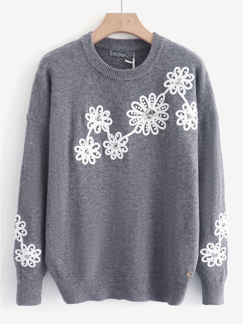 Details des gestrickten Pullovers mit bestickten Blumen ZD-YY2023