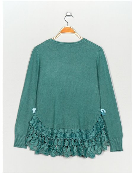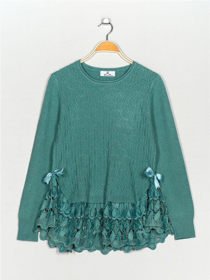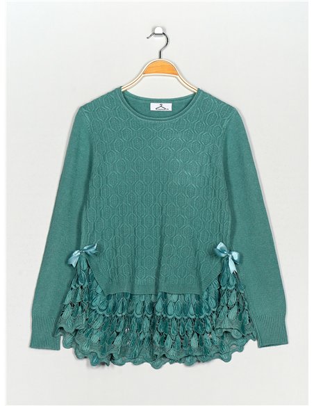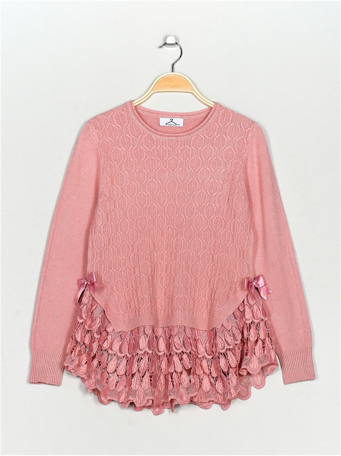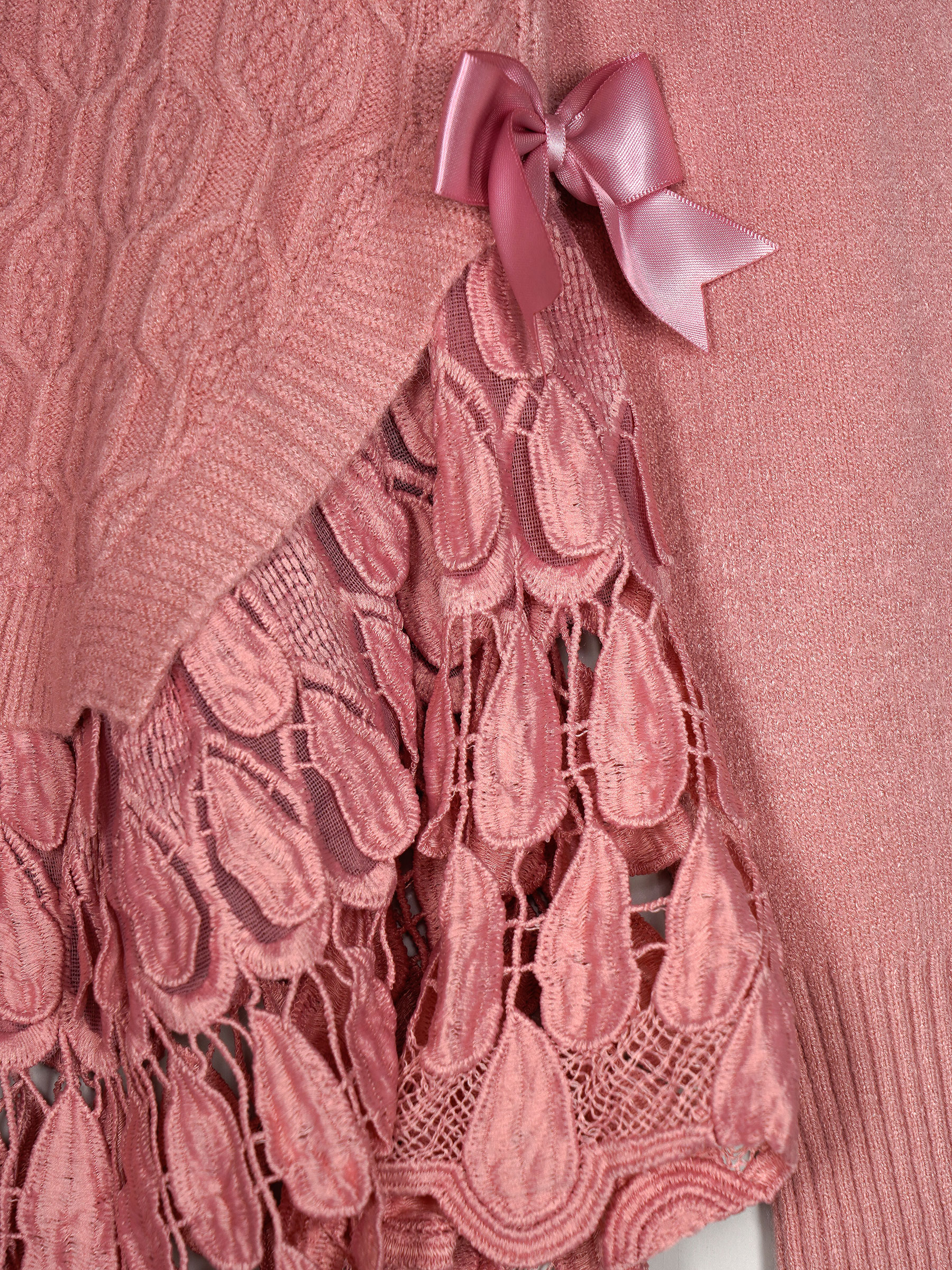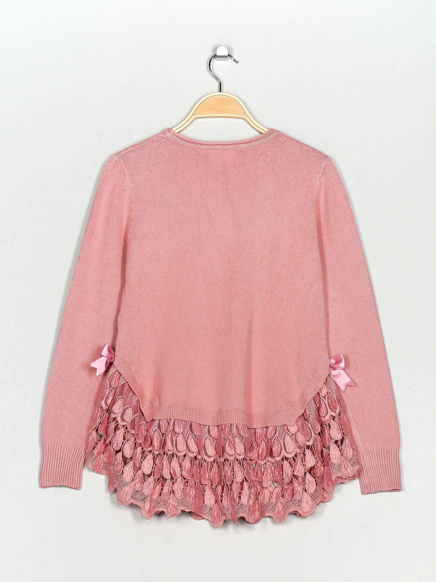 Strickpullover. Passende Spitzenverzierung. Runder Ausschnitt. Lange Ärmel.