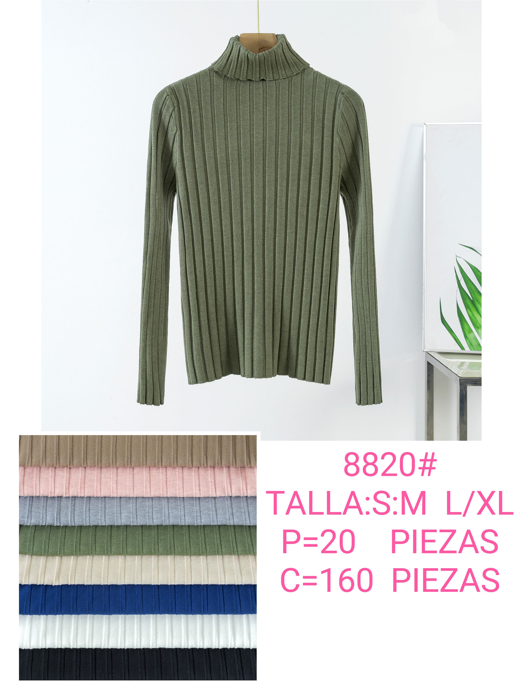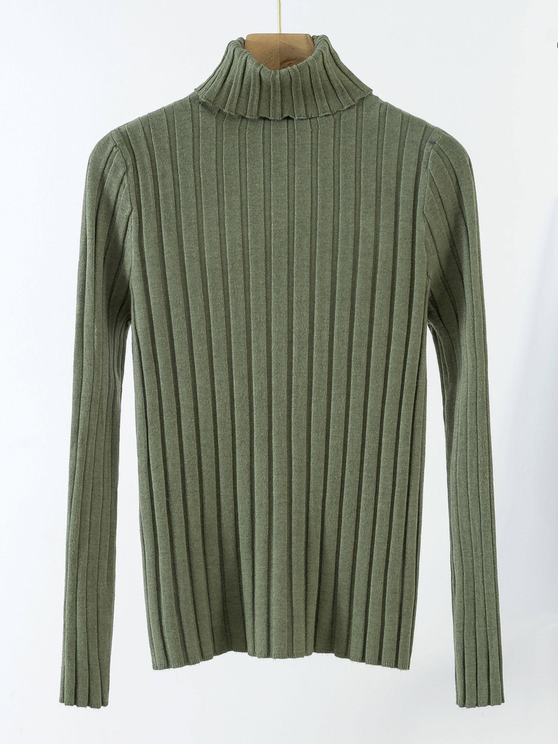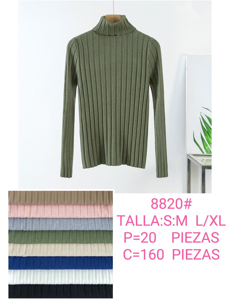 Details des breiten Rippenstrickpullovers mit Rollkragen FA-8820