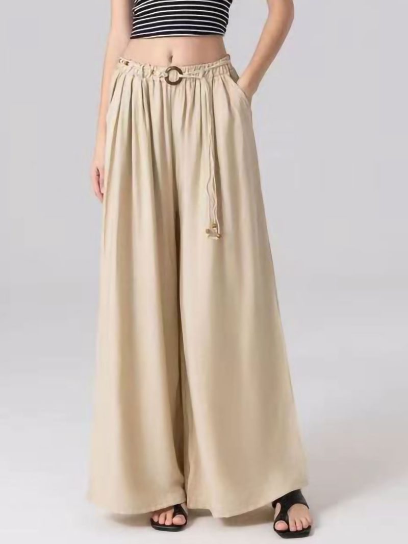 Weit geschnittene Hose mit Ziergürtel und Falten