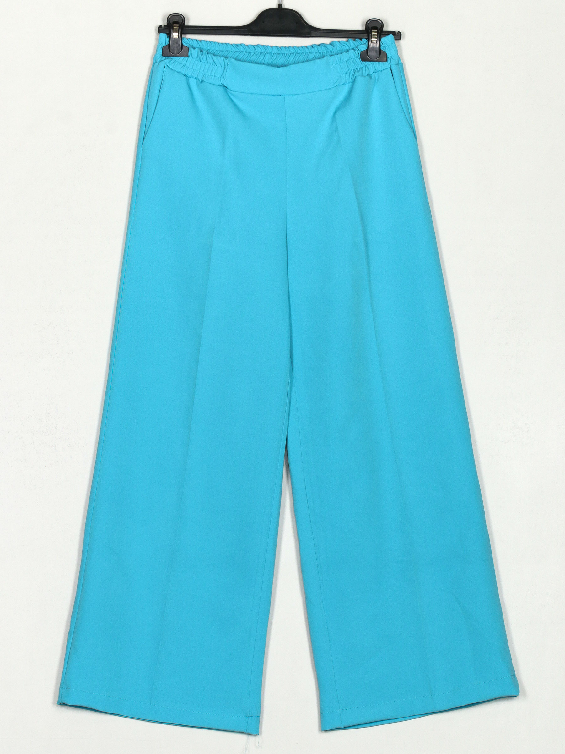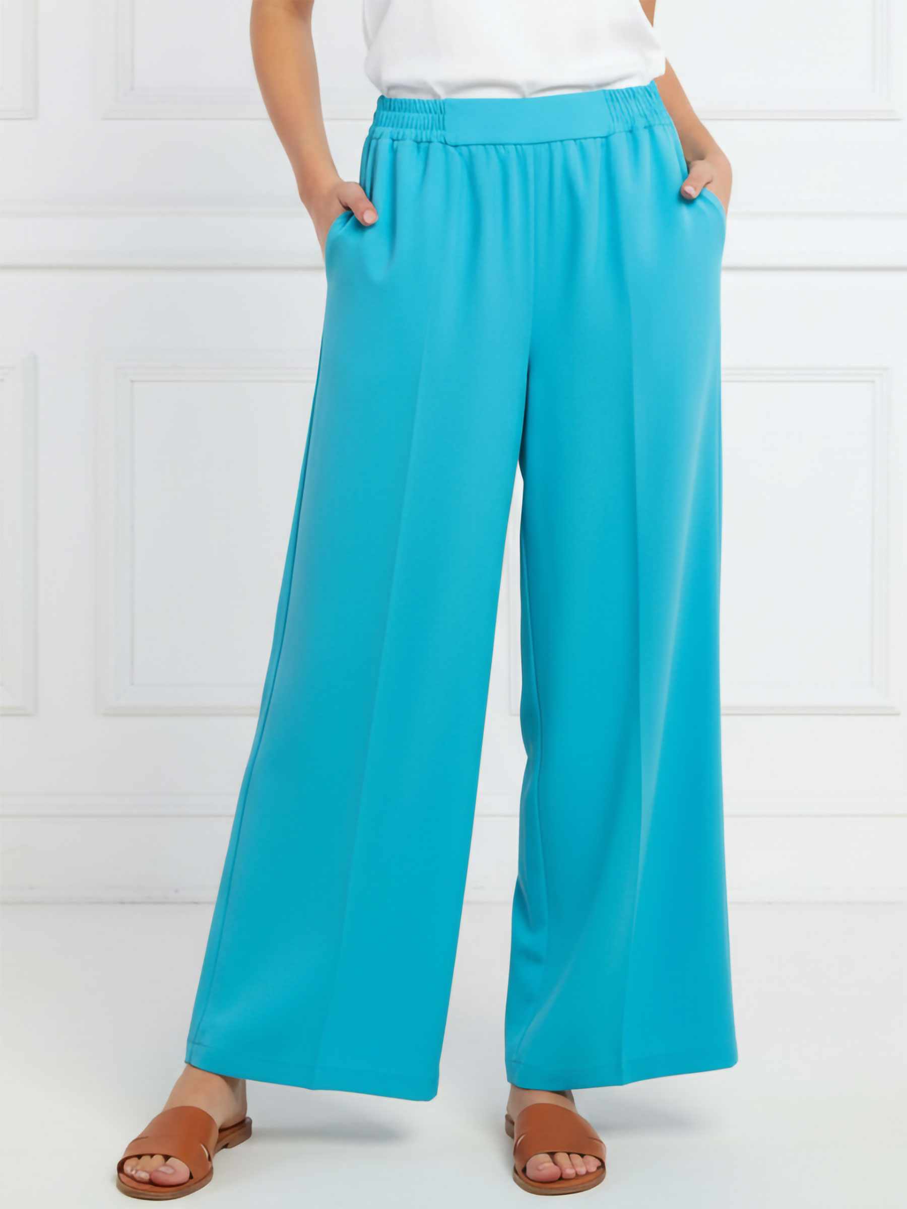 Schlichte Hose. Weites Bein. Seitentaschen. Hoher Bund. Elastischer Bund.