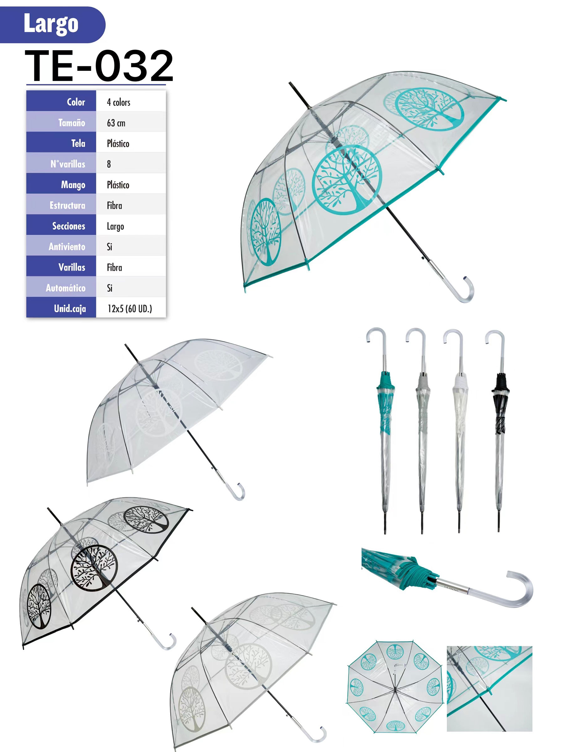 Details von langer transparenter Regenschirm árbol de la vida automático BF-TE032
