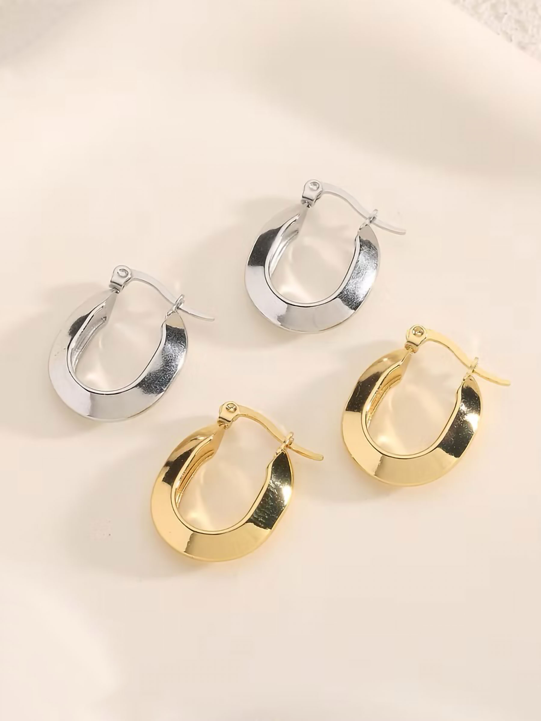 Details von langen Creolen Ohrringen - Edelstahl BS-YS099-YS100