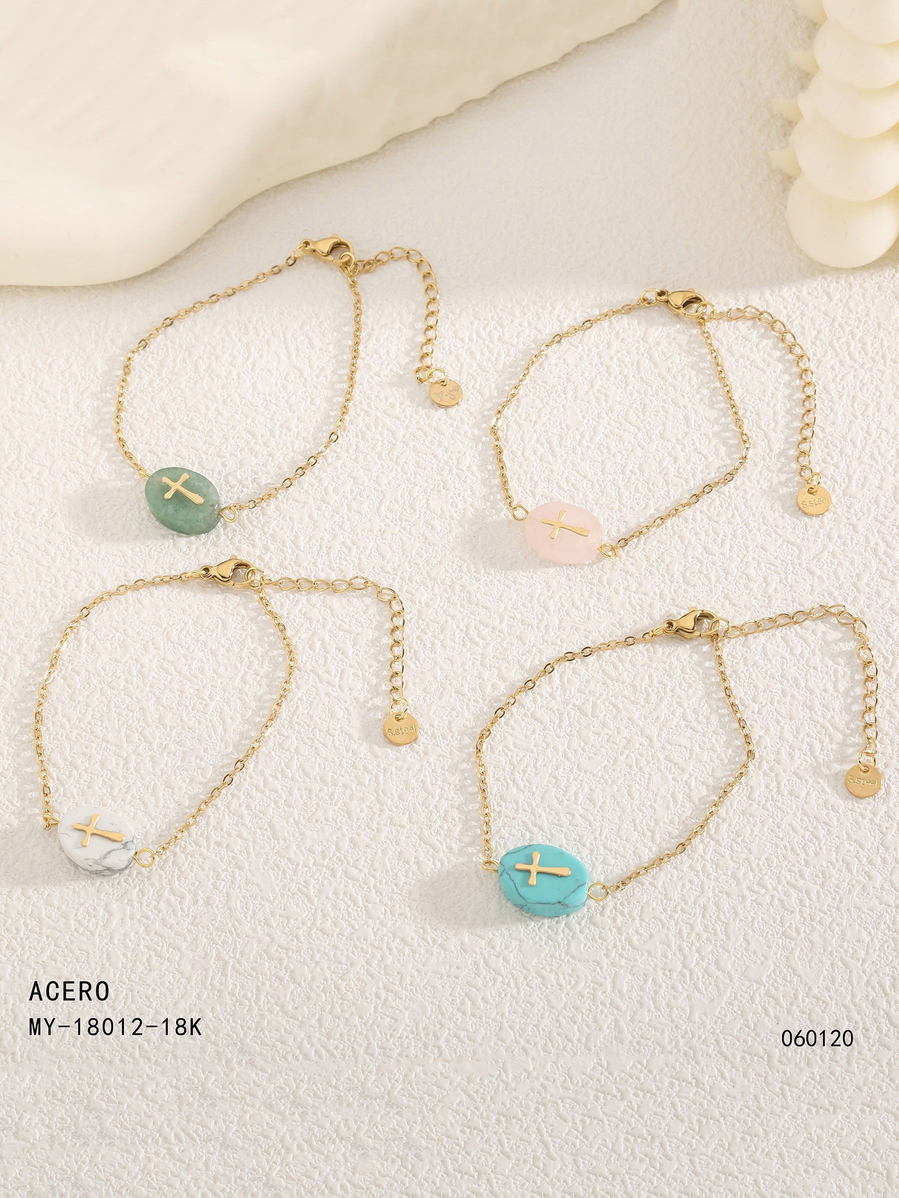 Armband mit ovalem Harzkreuz und Steinoptik - Edelstahl