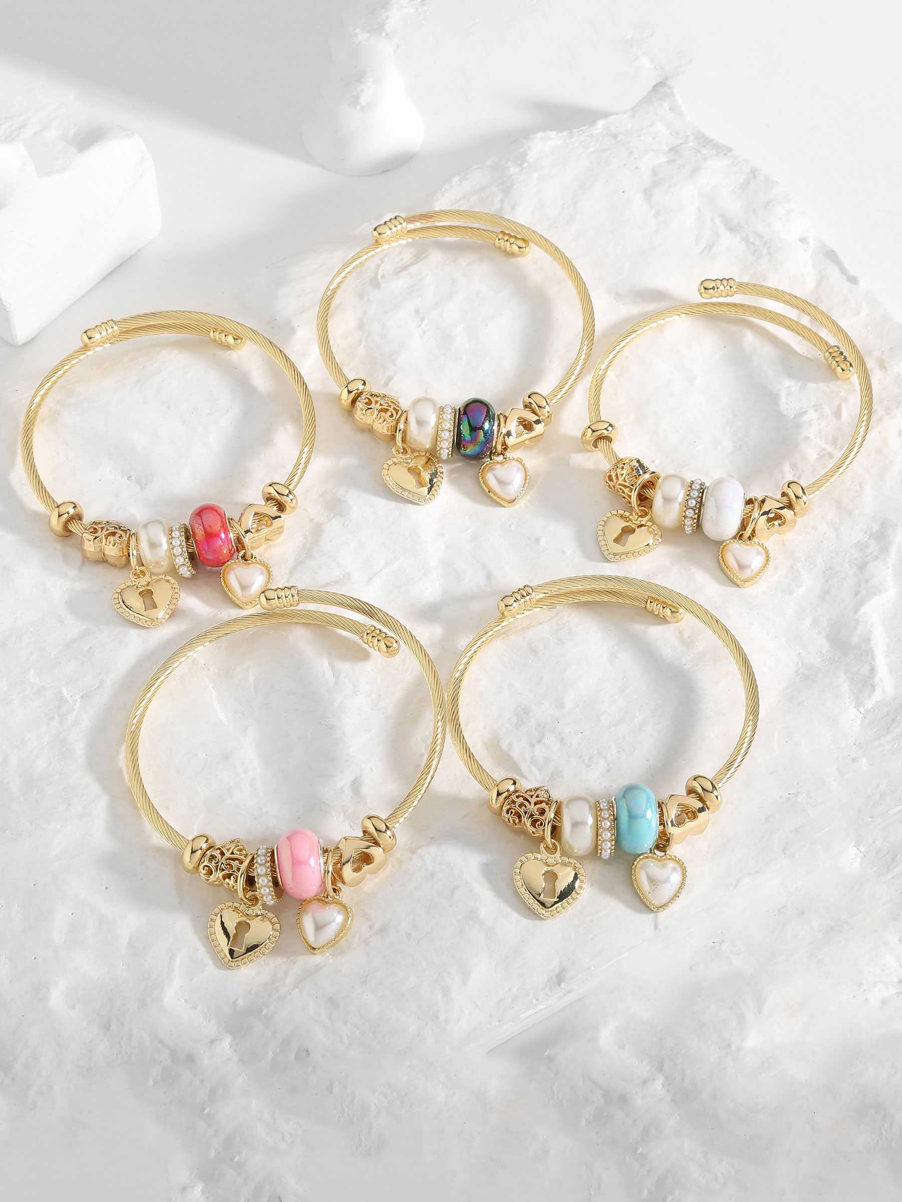 Details des Edelstahlarmband Charm Herzchen Perlendetail BS-LQ20140-GOLD