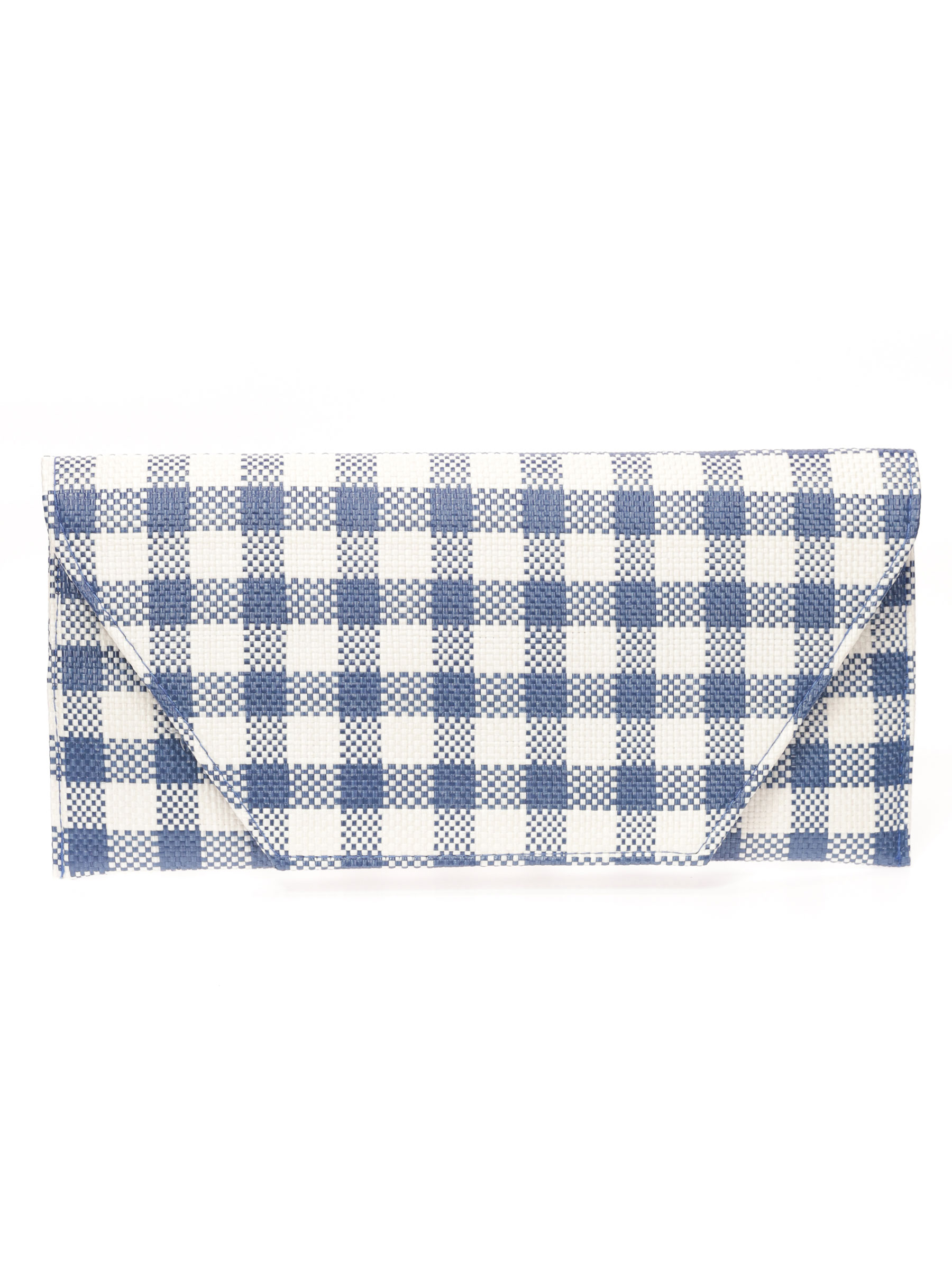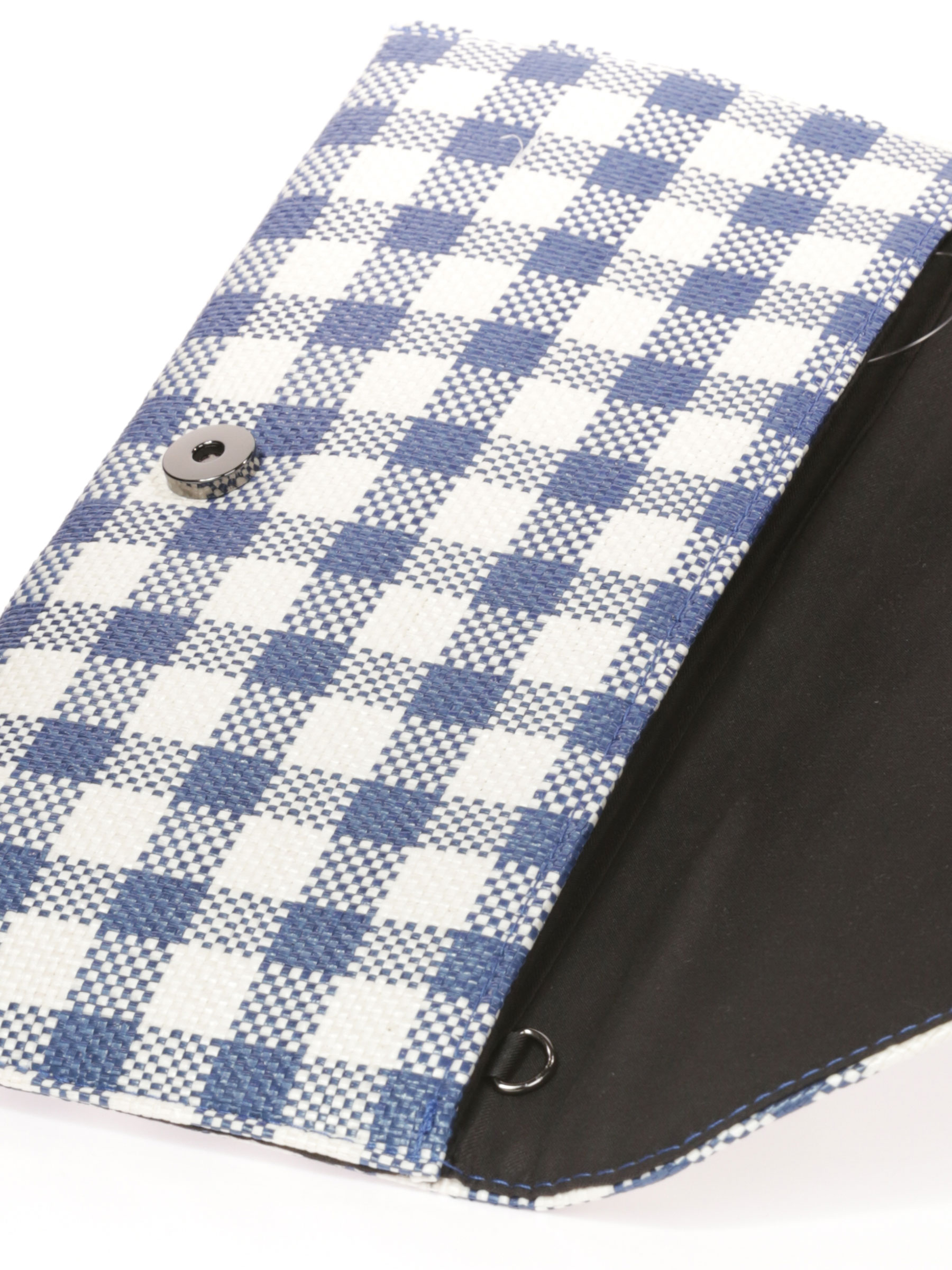 Details von AD-22229 MULTI-BLAU Party-Portemonnaie mit Karomuster aus Raffia-Effekt