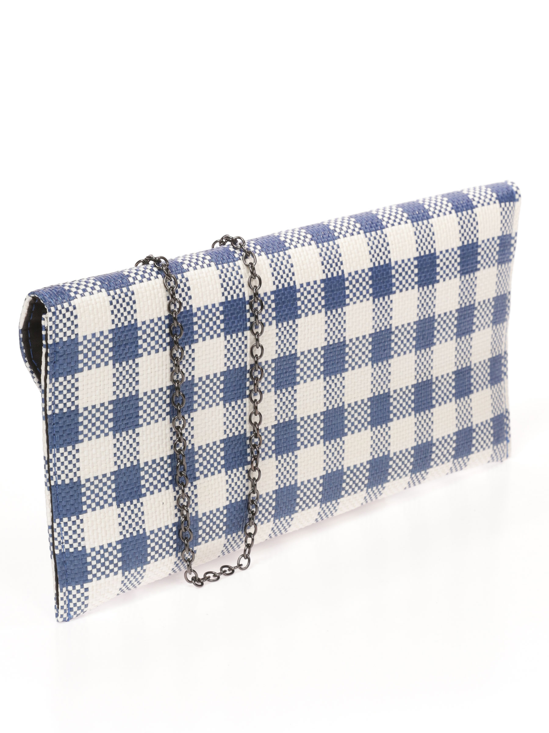 Party-Clutch mit Karo-Raffia-Effekt in Multi-Blau